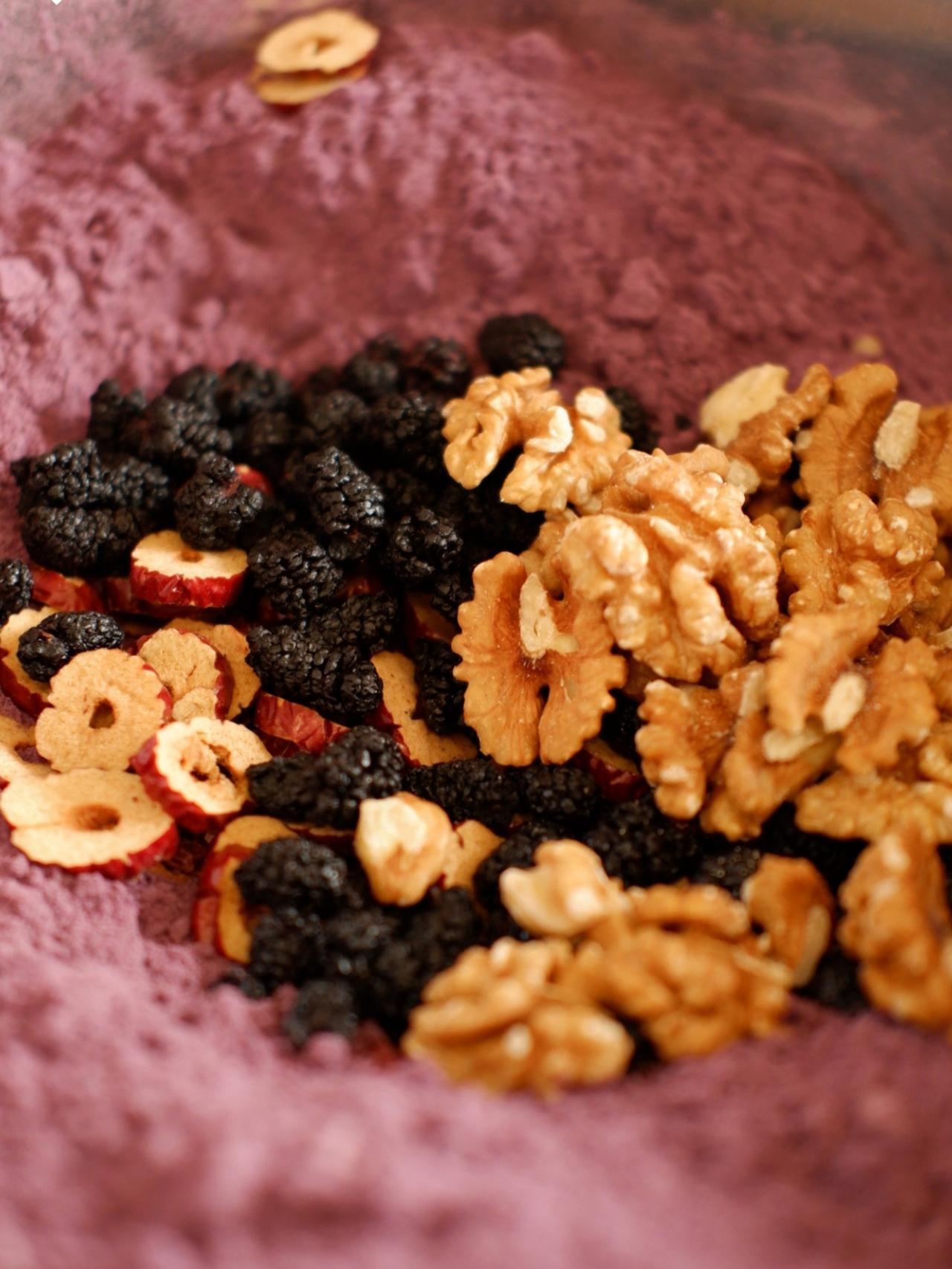 花青素紫颜粉 喝出来的素颜肌 衰老最大的敌人就是皮肤的氧化,比如熬夜吃甜食紫外线等都可能产生过量的自由基,而使皮肤开始氧化衰老。 因此姐妹们抗衰的基础基是要做好抗氧化,这款滋养粉是对身体非常健康又能抗氧化美容养颜的纯食疗养生粉,用到的配方都是含花青素超高的食材,因为花青素被称为“氧化的天敌”! 目前已知花青素的作用有:抵抗氧化、保护视力、修复肌肤、预防辐射、助益睡眠,日常生活中可以多吃富含花青素的瓜果蔬菜主粮。 现在的快生活节奏中鸭梨越来越大,夜越熬越长,皮肤越来越差护fu品用了一大堆,没啥起色。 这时候真要考虑食养内调了,平时加班工作压力大,经常熬夜加班,手机党电脑党,身体和皮肤一年不如一年,推荐的这款花青素粉,酸酸甜甜,拌酸奶也是可以的。 女人一旦迈入25岁,各种保养必须开始跟上,不管是身体还是皮肤保养,哪一个掉队都不行❌ 都说护肤的最高境界是抗衰,而衰老最大的敌人就是皮肤的氧化,如熬夜、吃甜食、紫外线等都可能产生过量的自由基,从而使皮肤开始氧化衰老,因此,姐妹们!抗衰的基础就是要做好抗氧化! 日常抗氧化的外用护肤品,内服胶囊产品很多,但多少都有化学成分,如果长期吃还是不放心~ 今天给大家分享一个对身体非常健康又能抗氧化、美容养颜的粉粉,用到的配方都是含花青素超高的食材,因为花青素被称为“氧化的天敌”这个配方做出来就是满满的花青素,太绝了!