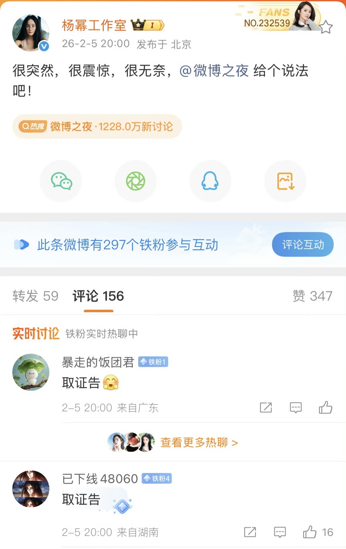 闹大了,杨幂工作室找微博讨要说法。