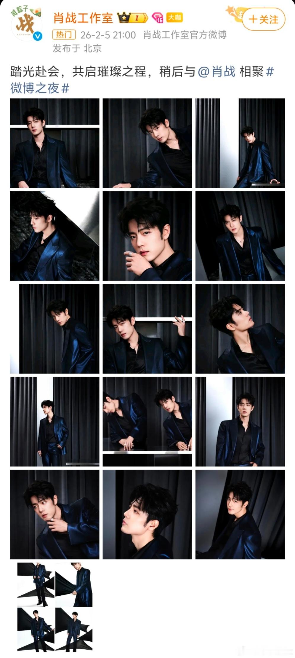 肖战第二套肖战这套造型真的温柔又贵气,藏蓝色西装质感拉满,简单的搭配却尽显精致。眉眼间的温柔藏不住,举手投足间又带着沉稳的气场,把优雅与大气完美融合,每一帧都让人移不开眼~