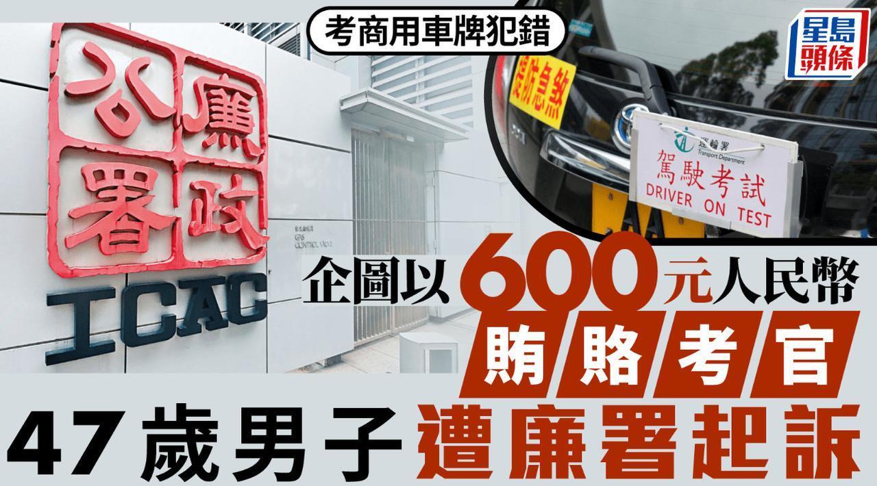 一名47岁男子,2月3日在元朗考驾照,知道自己不合格,拿出600元人民币贿赂考官,考官拒绝并报告上级,男子当日被捕,被控一项向公职人员提供利益罪名。 调查又发现此男子付款港币60,000元予中介公司安排报名考试,而不合格要再付款予中介港币8,000元安排补考。 被告展四周(47岁,司机,持内地身份证)承认一项「向公职人员提供利益」罪。裁判官覃有方判刑时称,廉洁是香港社会非常重要的价值。 任何人均不能试图行贿公职人员,形容被告企图行贿考牌主任以换取考试及格的行为,绝对不为社会接受。覃官指,法庭须判处具阻吓性刑罚,判处入狱8个月。