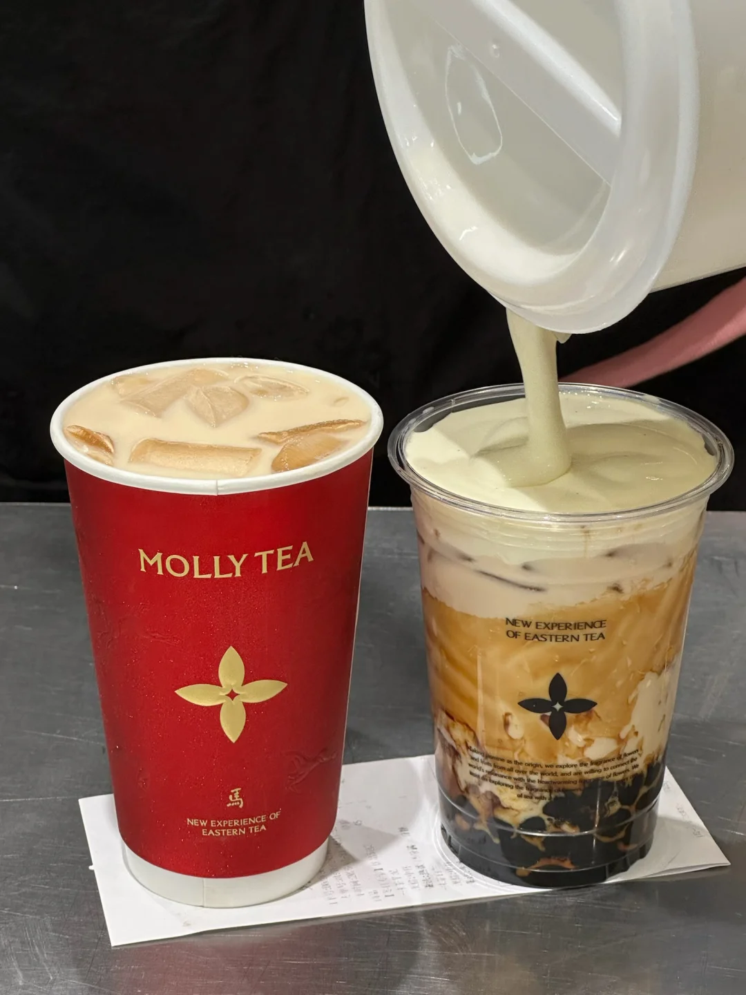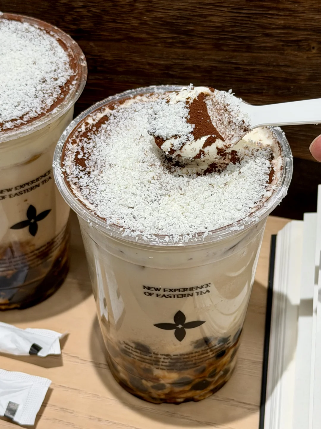 终于在奶茶里面喝到金骏眉了啊啊啊! 香草慕斯金骏眉真的是口感超级丰富的一杯! 特别是顶部的香草芝士奶盖,上面撒了白巧跟可可粉,一定先单独品尝,像吃慕斯蛋糕一样! 然后再搅拌均匀,液体部分的奶香中带着非常浓郁的红茶香,还有淡淡的花果蜜香! 底部还有糯叽叽的黑糖珍珠和香草软酪增加咀嚼感,谁来懂一下啊啊啊!!! 如果特别喜欢红茶的,就点另一杯丝绒厚乳金骏眉!真心觉得是近期好喝的两杯新品!