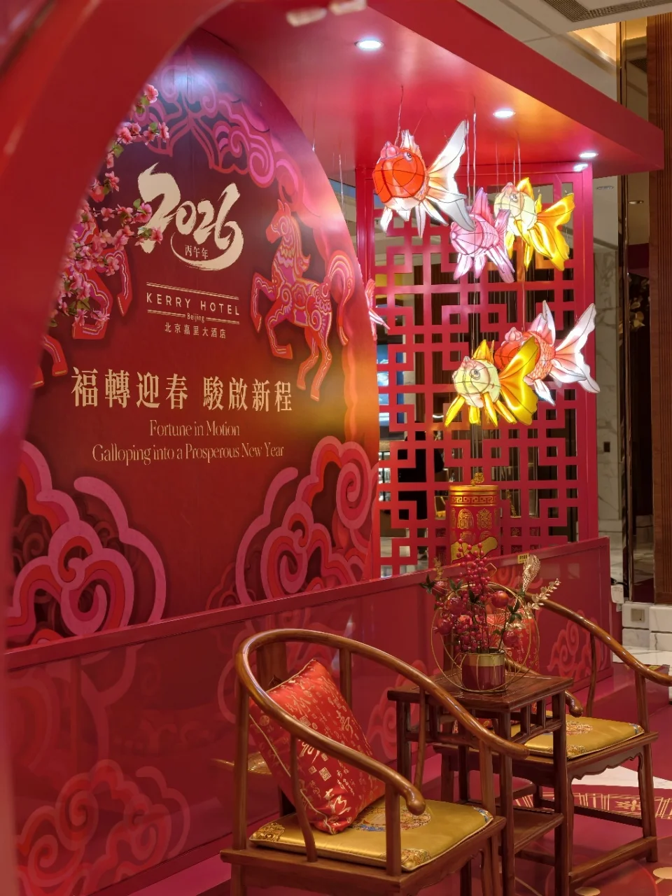 大堂挂起了非遗灯彩鱼灯和剪纸走马灯🏮年味儿浓浓,春节氛围已经拉满