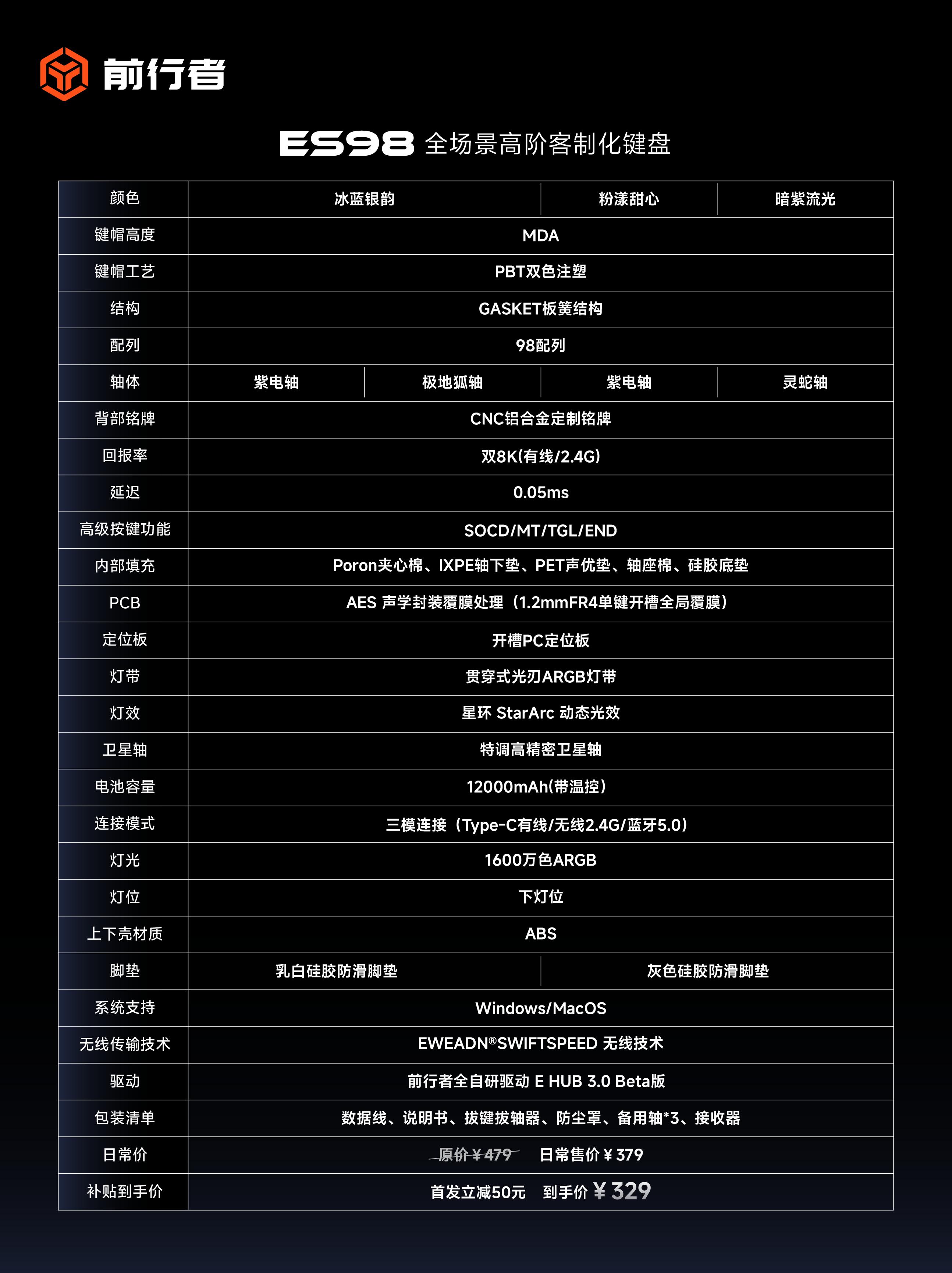 🎁前行者ES98 今晚开售。光随心动 全面新生——前行者ES98全场景高阶客制化键盘,今晚20:00全平台开售!