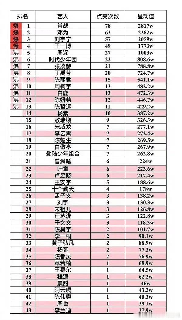 邓为微博之夜爆灯42次,是95后第一哎。尖叫之夜邓为尖叫次数也是断层榜一,为丝在