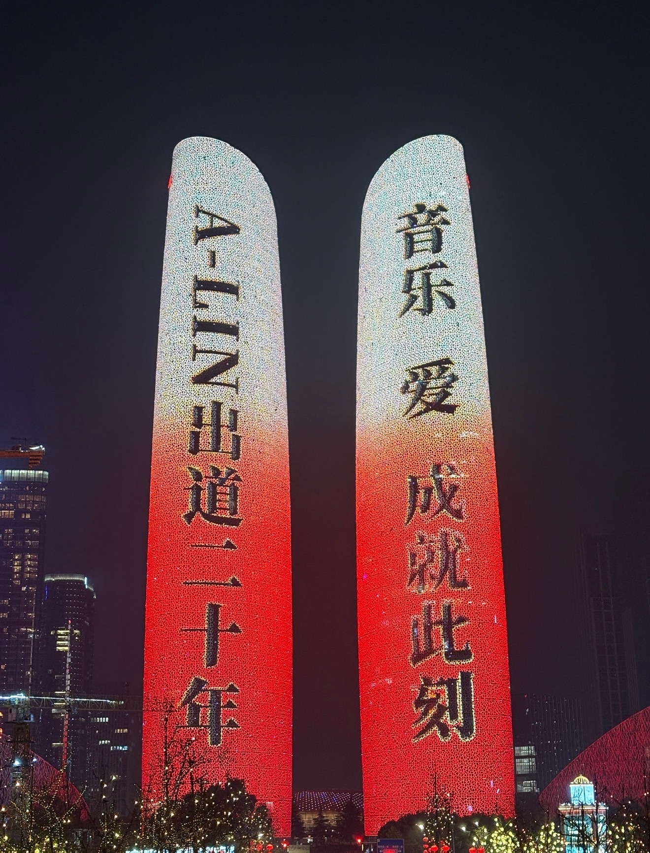 一连三场的A-Lin「歌迹」20周年巡回演唱会成都站今晚正式开演,双子塔为歌姬亮灯! 成都·双子塔