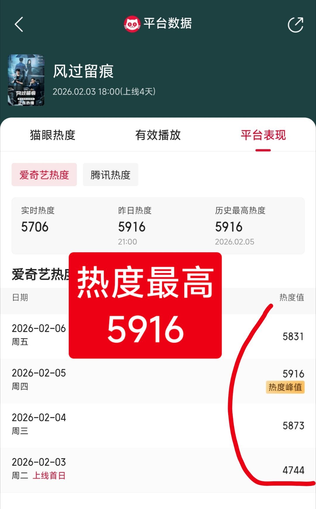 龚俊的剧《风过留痕》,就像风没有来过一样,热度最高5916!算是知名艺人剧集最低的热度了吧?