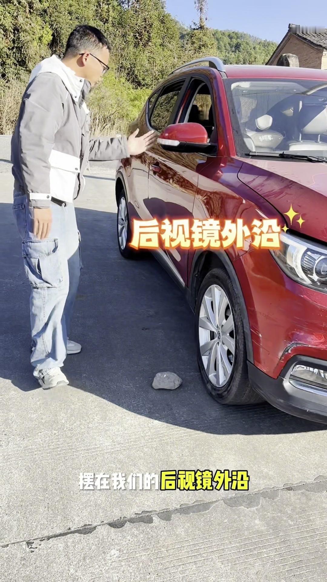 车内判断左右车距,新手也能一招会!🚗新手开车总怕剐蹭?教你个超简单的判断左右车距方法,不用苦练,拿到车就能上手! 先准备两块石头,一块放在左侧,距离车身30厘米左右,另一块放在右侧,同样在后视镜外沿位置。 上到车里,回正方向盘往后退,直到从车内能看到这两个石头,或者引擎盖刚好盖住石头时停车。 拿出记号笔或粉笔(没有就用胶带),在对应位置做个标记,这就是右侧安全点;左侧同理,标记好左侧的石头位置,这就是左侧安全点。 之后找标线练习,右侧标线就跟着马路牙子走,车身和车位线平行时停车,看后视镜,车身和标线距离至少20-30厘米,完全不会压线;左侧也一样,跟着边线走,平行后看标线,距离同样足够,稳稳通过。 掌握这两个安全点,过窄路、限宽时,不管是右侧的石头还是左侧的马路牙子,只要出现在安全点以外,车轮就不会压线,开车更有底气啦!