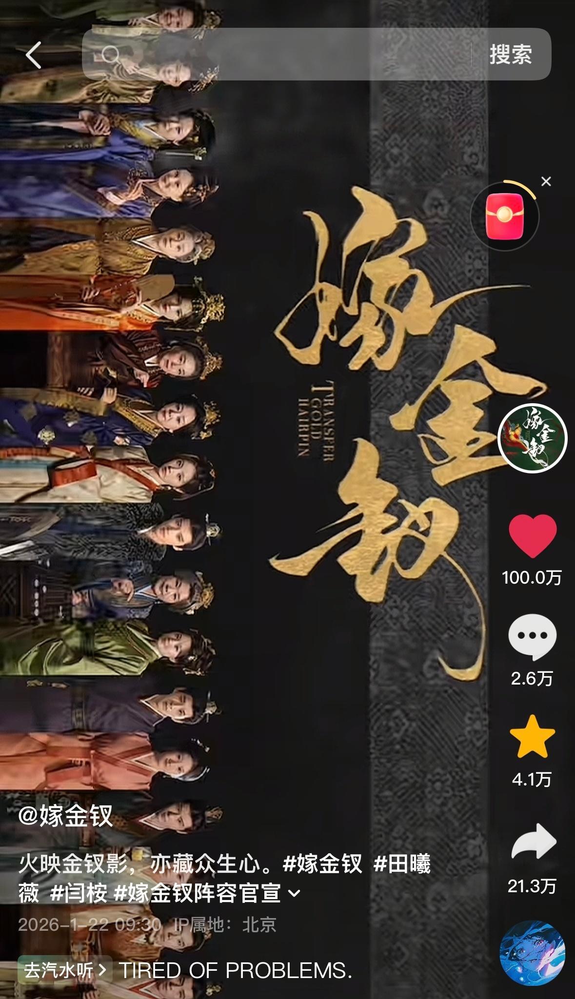 嫁金钗群像视频点赞破百万5个作品2个百万赞这个嫁金钗牛哇嫁金钗