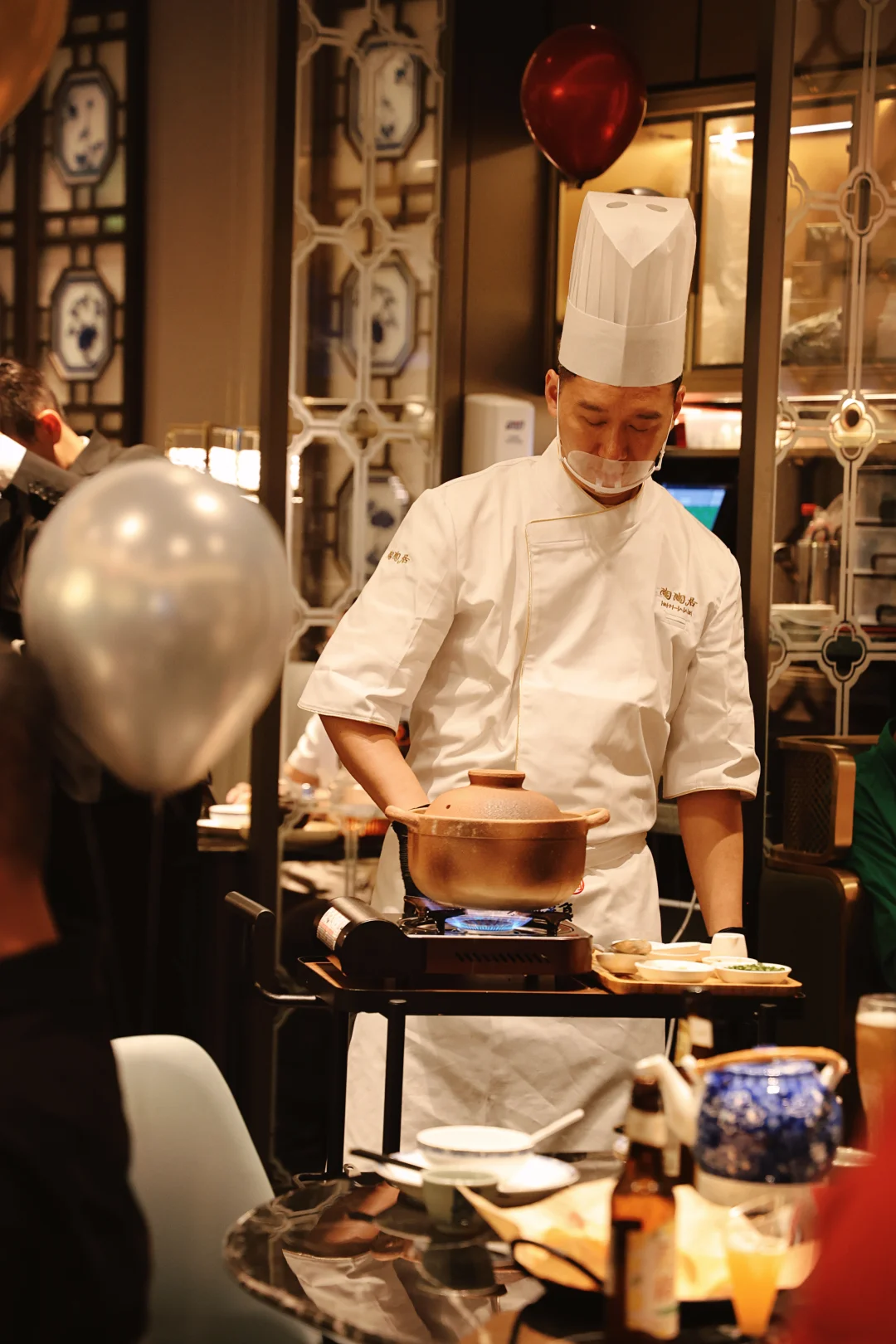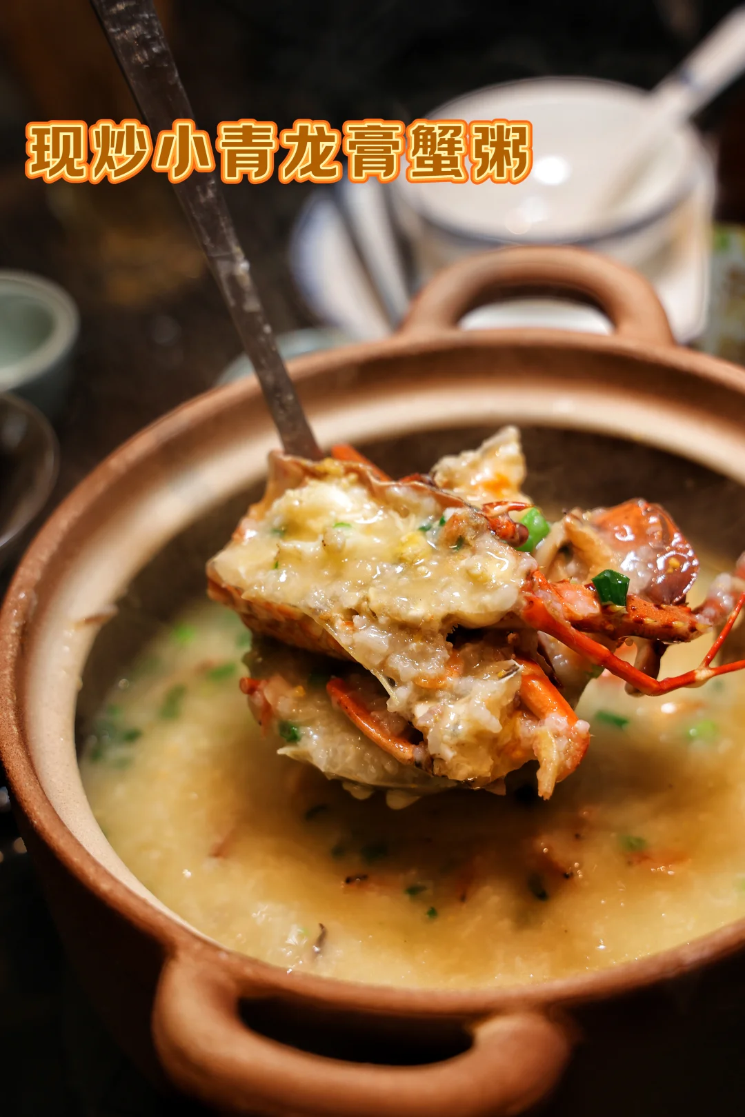 厨师就在你眼前操作!猛火起锅,爆香十几种配料,再倒入熬好的粥底和活蹦乱跳的海鲜,滋啦一声…香气直接扑鼻而来!这仪式感,绝了!