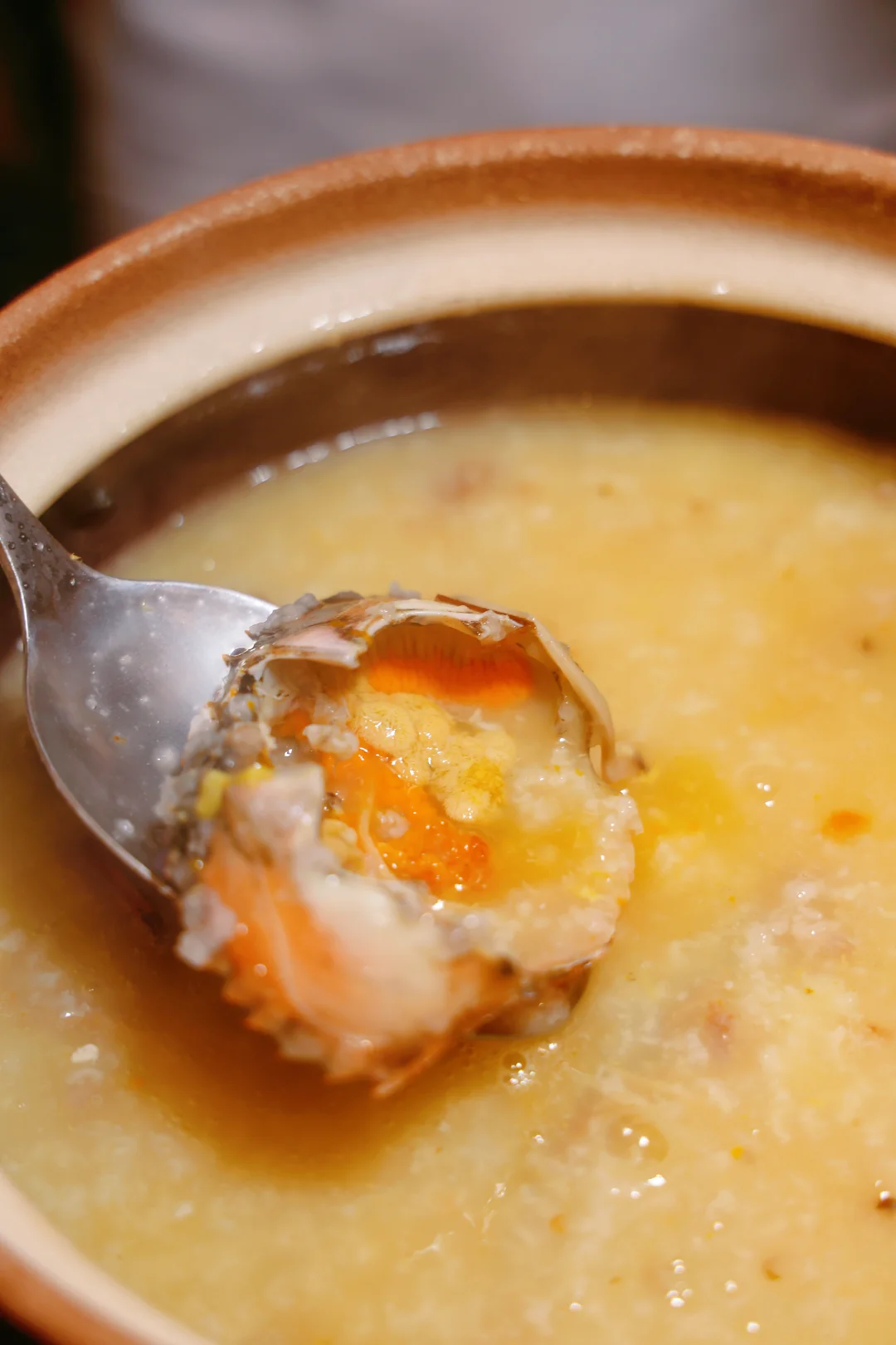 这一煲现炒海鲜粥,海鲜是绝对主角。膏蟹,小青龙,鱿鱼,樱花虾…满满当当一个“海鲜军团”冲进绵密的粥里,每一勺都是料!入口那个鲜甜浓郁啊,是大排档都难找的实在!