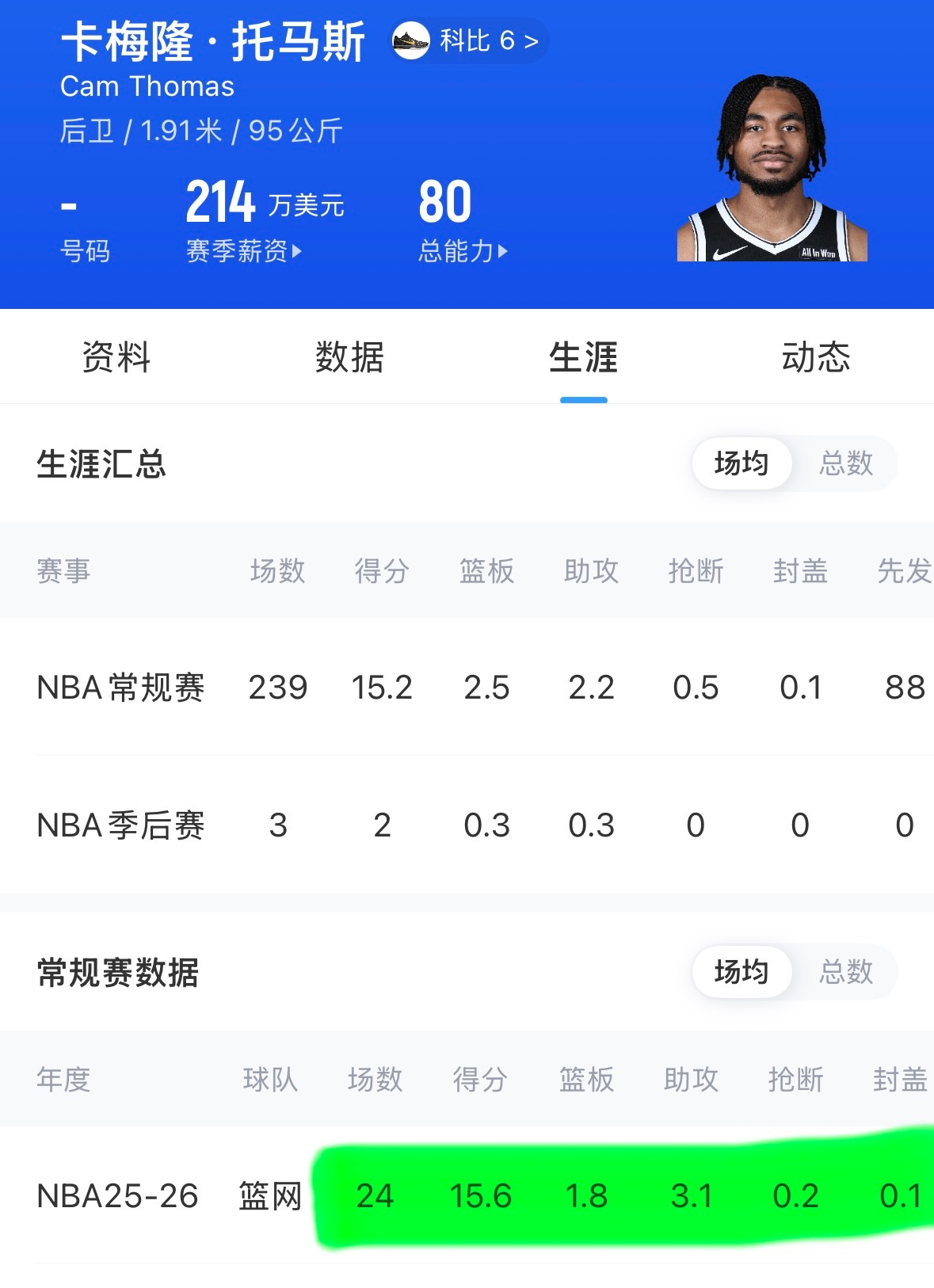 托马斯本赛季场均能拿15.6分,然而他被篮网裁掉了,现在在自由市场还没人要呢。这