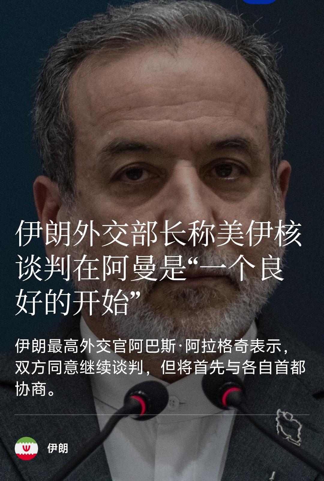 美伊谈判怎么样?伊朗外交部长称美伊核谈判在阿曼是“一个良好的开始”。 伊朗最高外交官阿巴斯·阿拉格奇表示,双方同意继续谈判,但将首先与各自首都协商。 阿拉格奇在会议结束后对伊朗媒体表示大家在非常好的氛围中交换了观点。 这是一个很好的开始。双方同意继续谈判,但会回首都商议如何继续。 如果这一趋势持续,将在下一次会议中为未来谈判制定坚实框架。 谈判采用间接谈判,阿曼外交部长布赛迪在首都马斯喀特的住所往返于双方之间。 多家媒体透露了谈判前各方博弈细节,谈判几乎取消。 据半岛电视台透露,谈判前土耳其、卡塔尔和埃及向伊朗和美国提供了即将举行的谈判框架——包括伊朗承诺大幅减少铀浓缩、承诺不使用弹道导弹以及停止支持抵抗团体。 据消息人士透露,还明确要求伊朗承诺实现零浓缩铀。 伊朗目前储存的60% 铀必须被转移到第三个国家。 伊朗要同意不向中东地区非国家盟友转让武器和技术。 德黑兰还将在这一框架下承诺不首先使用弹道导弹。 报告补充说,即使这样,仍然未能满足美国要求伊朗限制其弹道导弹数量和射程要求。 伊朗在之前的谈判中已经表明愿意限制浓缩铀。 但拒绝放弃对盟友的支持,并表示其导弹计划不可谈判。 伊朗拒绝就其导弹计划和支持抵抗组织进行任何谈判,要求会谈仅聚焦于核问题。 结果,根据美国和以色列的报告,包括 Channel 12 和 Axios,华盛顿取消会议。 一位美国高级官员告诉Axios的Barak Ravid细节, “我们告诉他们,要么接受这个,要么什么都没有;他们回应说:‘那好吧,什么都没有,’” 据报导,华盛顿在阿拉伯盟国的游说下,同意在阿曼与伊朗会面。 现在不知道会不会有下一轮谈判。