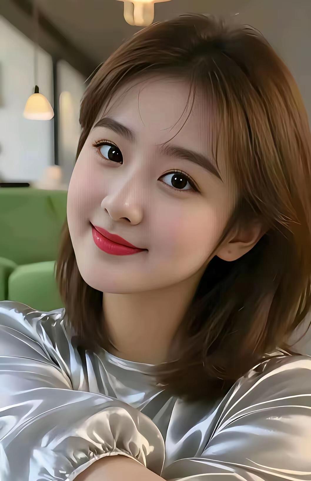 冷白绝美东方女性,金棕微卷长发垂坠蓬松占满画面,水亮丰唇与细肤极致俊美。