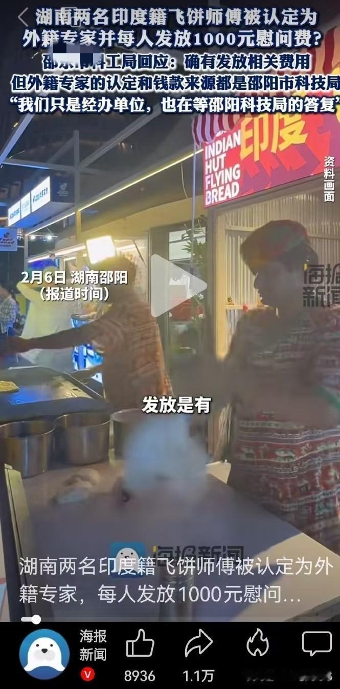 格印度飞饼师傅被科技局认定外籍专家,每人发1000元慰问费?湖南真格局[赞][赞