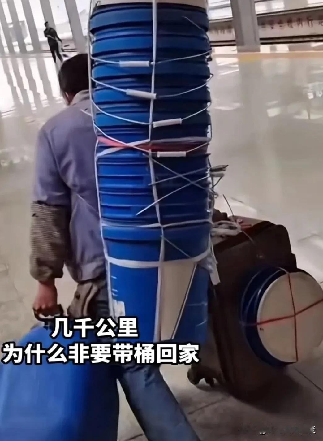 实在想不通大叔的这种行为。在火车站看到一位大叔,背了十几个油漆桶,摞在一起都超过了他的身高,看着他艰难的步伐实在想不通,这桶也不值钱,他为什么非得千里迢迢的背回家? 有人说这就是农民大叔的情节,他认为有用就拿回家,费点力气不算什么,拿回家可以省很多钱,拿回去送给别人也很高兴。 如果换成是你,你会把这桶拿回家吗