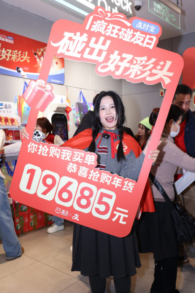 支付宝碰一下把盒马玩成游乐场还得是支付宝,真的太会玩了!中奖抢购的人抢得快乐,站在外面围观的人看得开心!支付宝碰一下“疯狂碰友日”和盒马,你们让全民皆欢,这过年的氛围一下子就起来了~