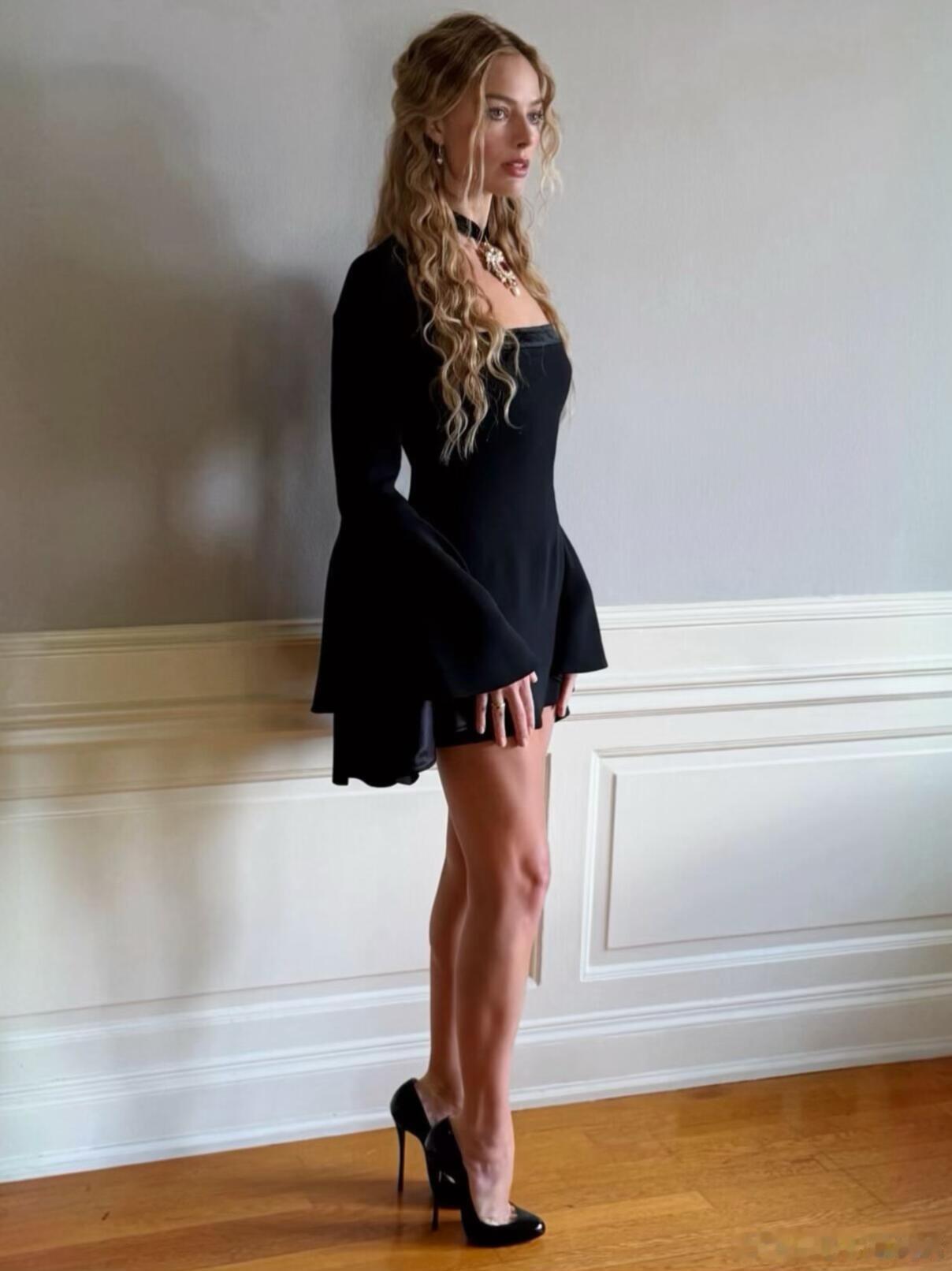 罗比宣传造型搭配的这两双高跟鞋都来自ChristianLouboutin,跟高1