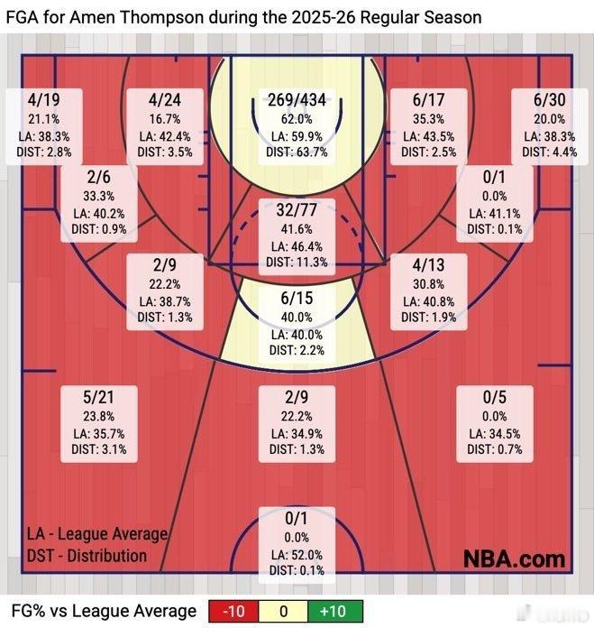 对比阿门本赛季与上赛季(左图)的投篮分布图实在是——______?阿门汤普森休斯