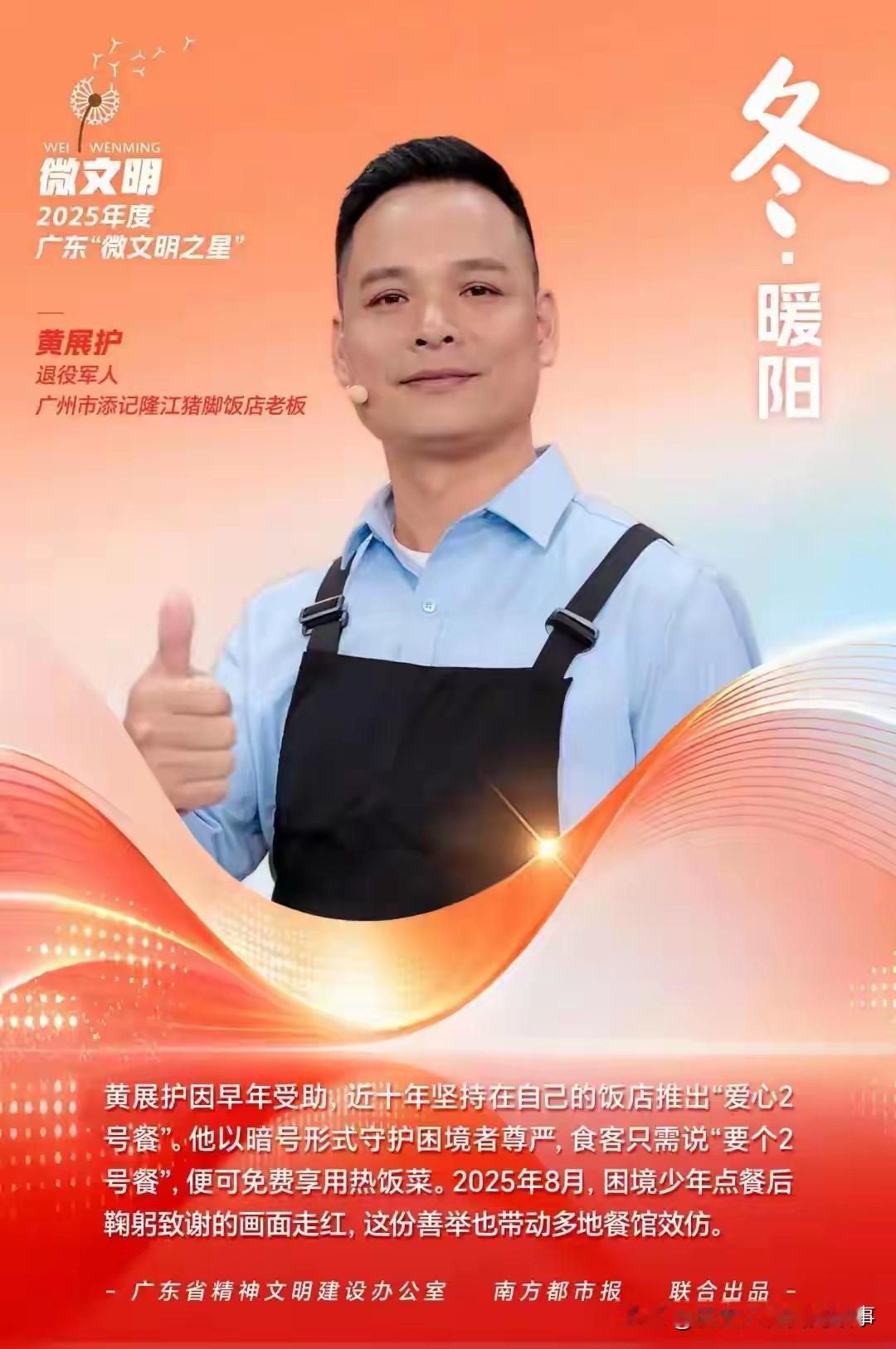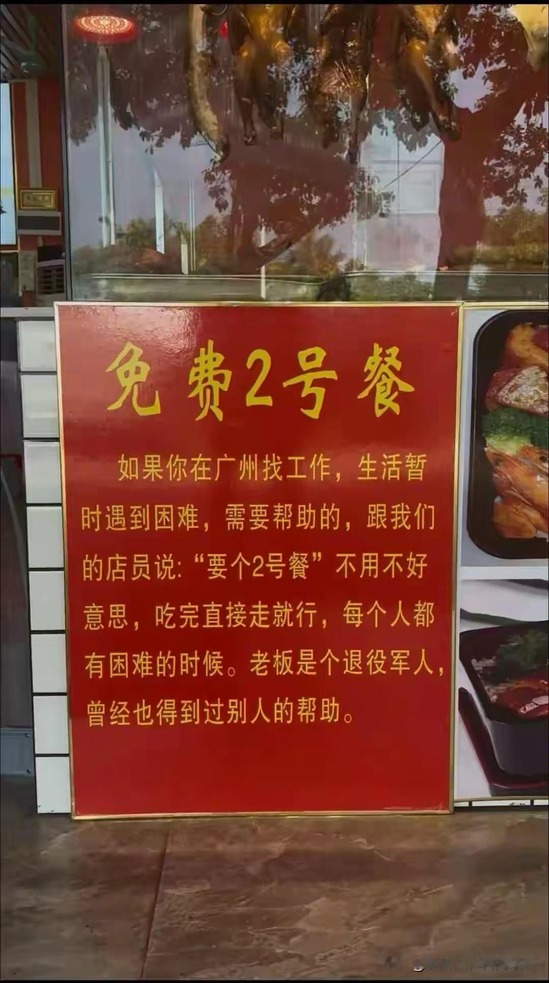 原来这不是“逃单”,是老板坚持近10年的暖心暗号,看完真的破防又治愈❤️ 完整真相 广州番禺,猪脚饭店老板黄展护(退伍军人、广东揭阳惠来人),在店里悄悄设了一个**“2号餐”免费暗号**: 门口牌子写着: 如果你在广州遇到难处、没钱吃饭,只要说**“来一份2号餐”**,不用不好意思,吃完直接走,每个人都有难的时候。 那天小伙子在门口徘徊很久,小声点了“2号餐”,老板娘立刻端上满满一碗猪脚饭,和正常售卖的分量、用料一模一样,没有半点敷衍。 吃完他没付钱,对着老板深深鞠躬、说谢谢才离开。 旁边顾客以为他没结账要提醒,老板笑着摆手:没事,这是2号餐。 最戳人的细节 - 暗号叫2号餐,取“爱”的谐音,保护对方尊严,不用乞讨、不用解释。 - 坚持近10年,自费承担,分量从不缩水。 - 带动广州30多家餐厅加入,从一家小店变成一座城的温暖。 老板说:我也穷过、难过来,一碗饭不值多少钱,但能帮人渡过低谷,守住体面比什么都重要。 这才是人间烟火里最亮的光:不施舍、不围观、护尊严、暖人心。黄记王牌猪脚饭 广东话暗号 广东人暗号 素材来源于网络