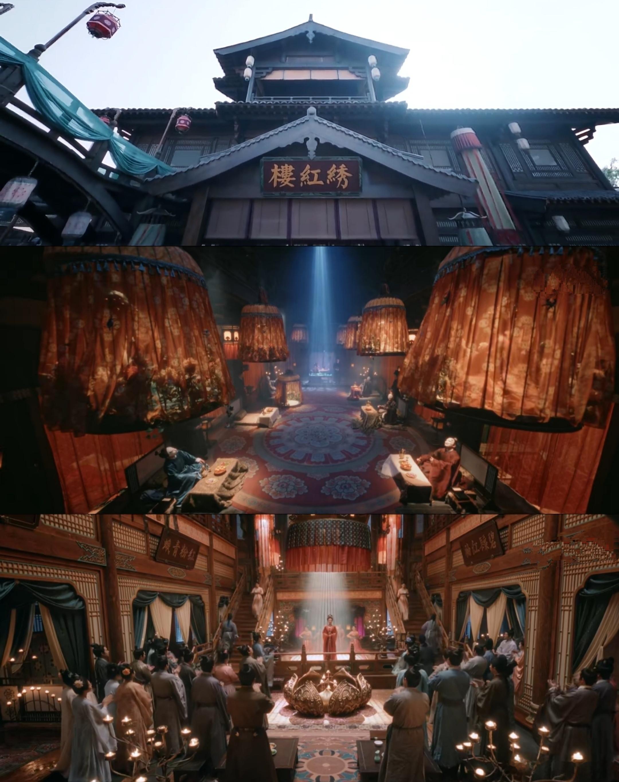 镜头之下还有双螺旋叙事结构,先通过壁上花含笑之死引出娄绰,再经由他查出绣红楼藏污纳垢之事,后牵扯出朝内大臣官商勾结,草菅人命,由小及大的悬疑十分引人入胜,既能抓住观众对个人命运的关切,如出宫人和县主能否脱身,又能引导观众思考更广泛的问题,如背后的大手究竟是谁,竟然无视律法。