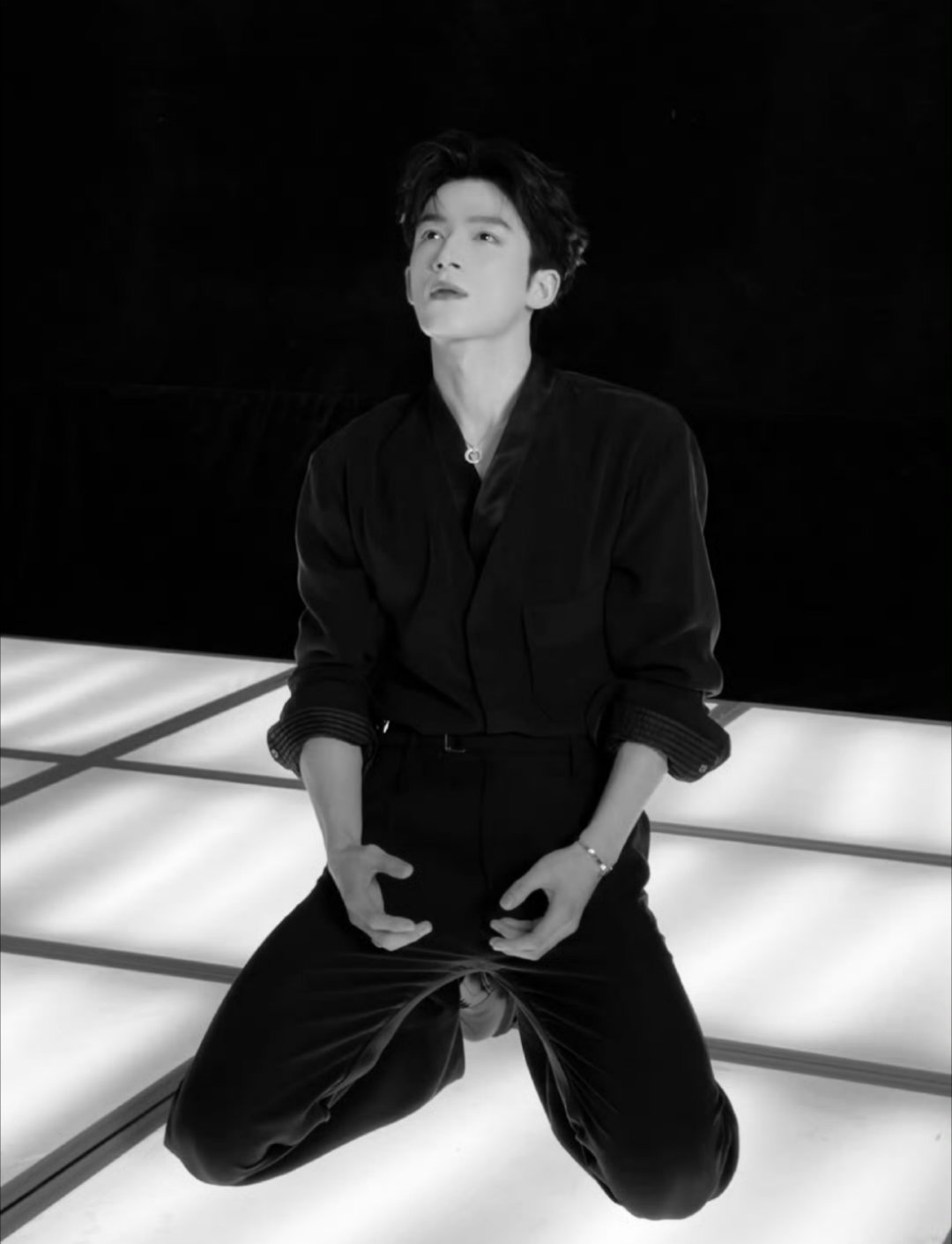 敖瑞鹏高级感十足 灰色西装通常很难穿出彩,但穿在敖瑞鹏身上却显得如此契合。镂空设