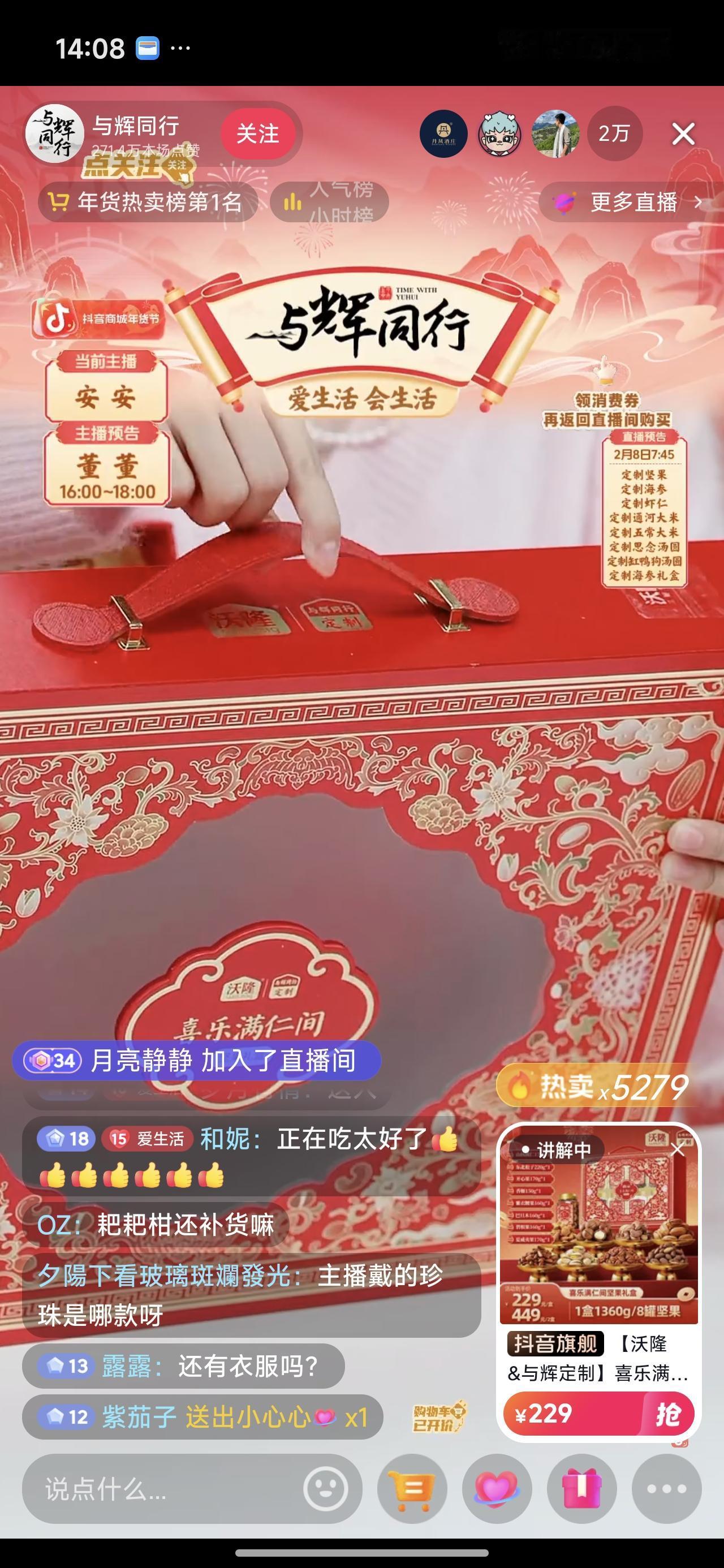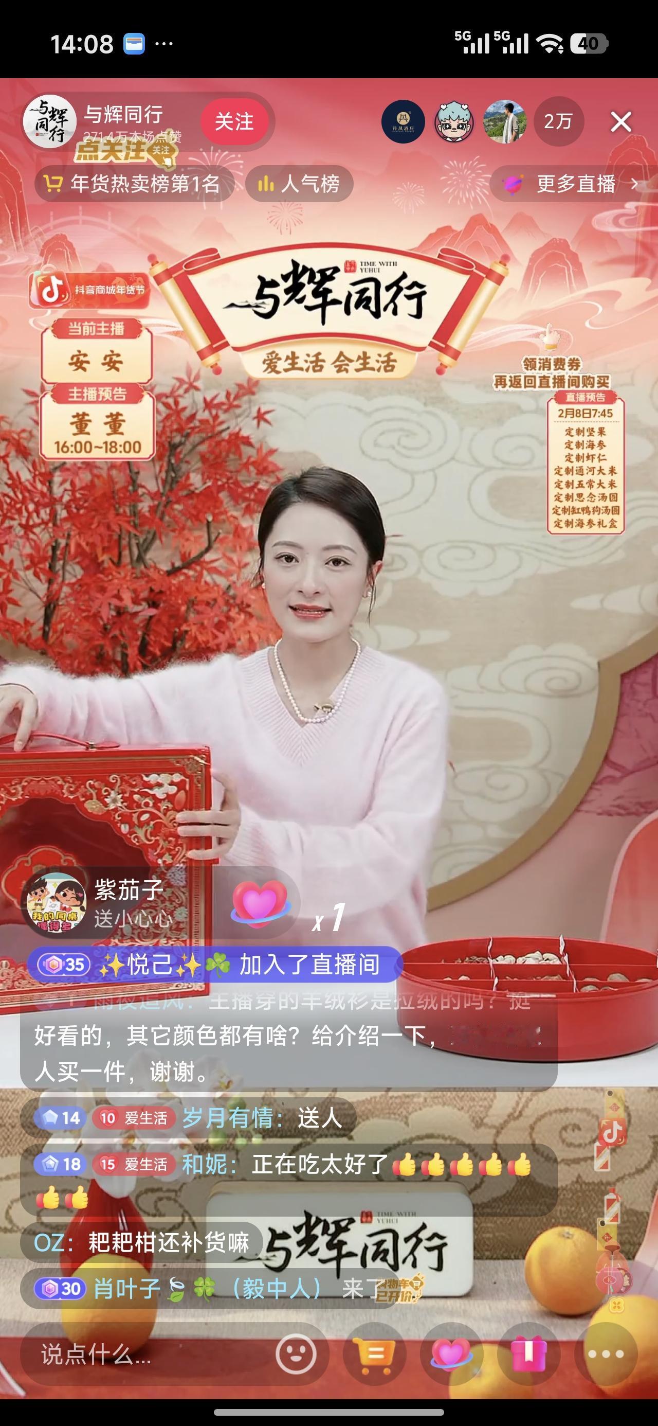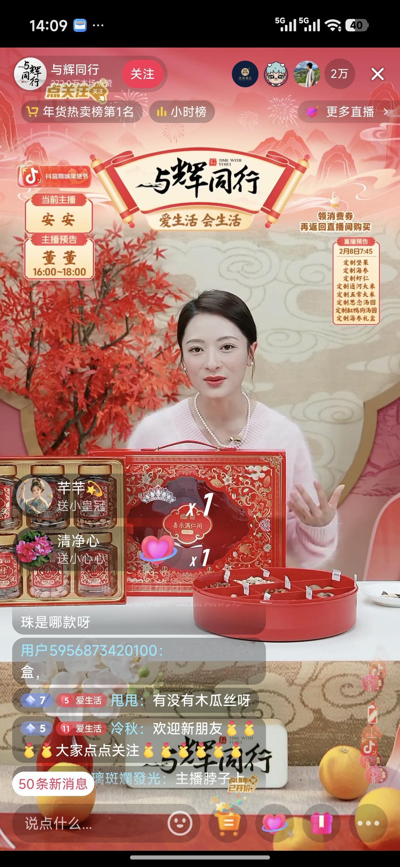 与辉同行最近这口碑有些下滑了,我还以为对销量会有些影响,今天刷到了,进去看了一下,两万人在线,5000多的销量,卖的是坚果礼盒。销量还是挺不错的。 卖那三只鸡老母鸡,有多少人相信是四五个月的老母鸡,那她一定没有在农村生活过。正常农村人不会买,因为它不现实。不可能是养到了四五个月的老母鸡。 要问我怎么看,我觉得商人,卖东西,总会有一些利润大的产品来盈利。这个鸡,就是。想买就买,不买人家也没求着咱买。至于说买了,当好东西吃的,那是没有认知。傻乎乎的。