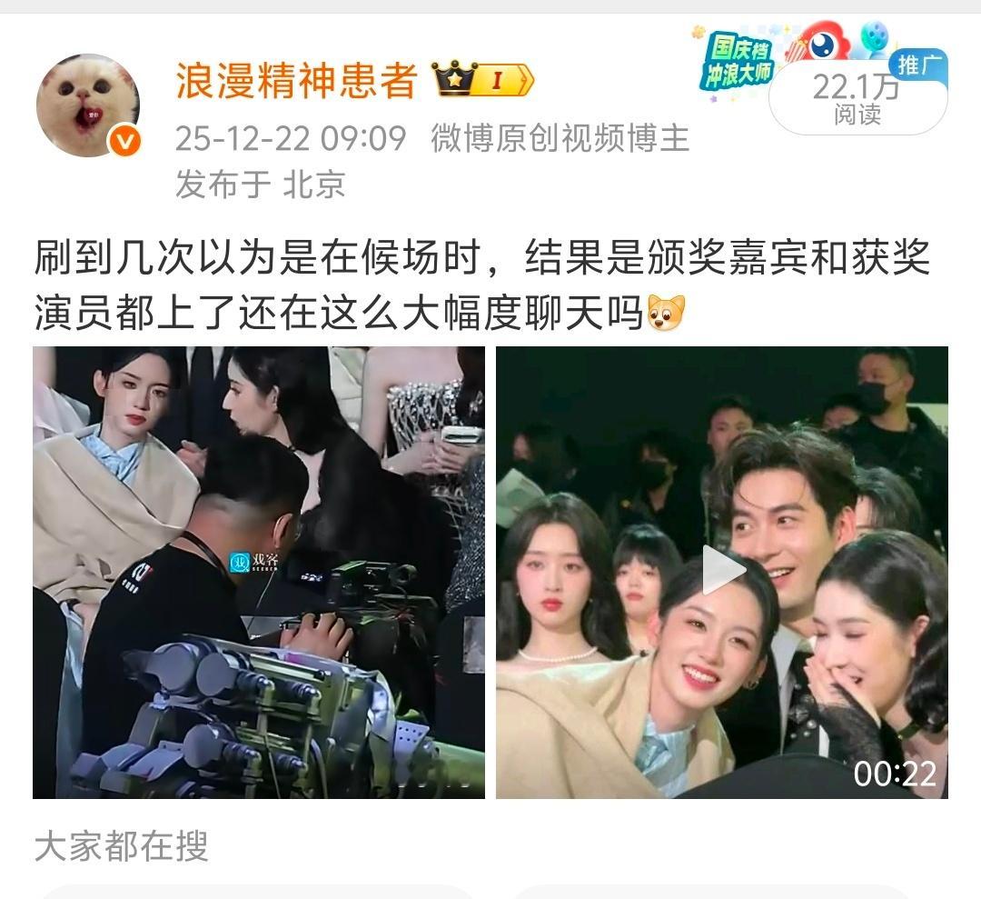 上次只是感慨没想到周也和王玉雯大幅度聊天是在开始颁奖后,粉丝说我酸她靠说小话全球出圈(事实上后面九日采访回应觉得不合适)结果这次粉丝自己都受不了了是因为这次聊天的对象是已有一番代表作的孟子义,对比起来心态失衡了吗