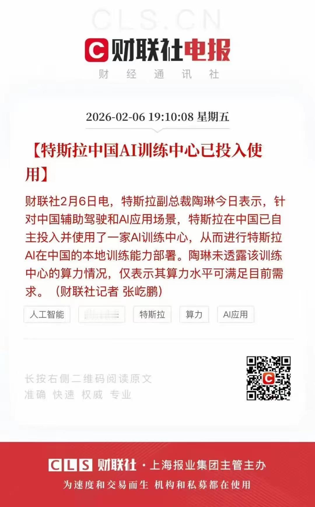 特斯拉在中国的AI数据中心开始成立投入使用!根据特斯拉的技术发展,在中国必然会推动智能驾驶辅助系统,对算力需求大幅增加,因为智能驾驶汽车技术以及自动驾驶汽车技术会需要大量的算力来支撑,那么算力芯片将会在汽车这个赛道呈现出上涨趋势!全球都将进入自动驾驶这项技术行业。传统燃油车将逐渐的退出市场!未来的市场将都是智能化时代,那对高端算力芯片需求是必然的趋势! 中国也在加速推动自动驾驶技术快速商用落地,而特斯拉同样也在中国要推动智能辅助驾驶,甚至未来也要推动自动驾驶技术!