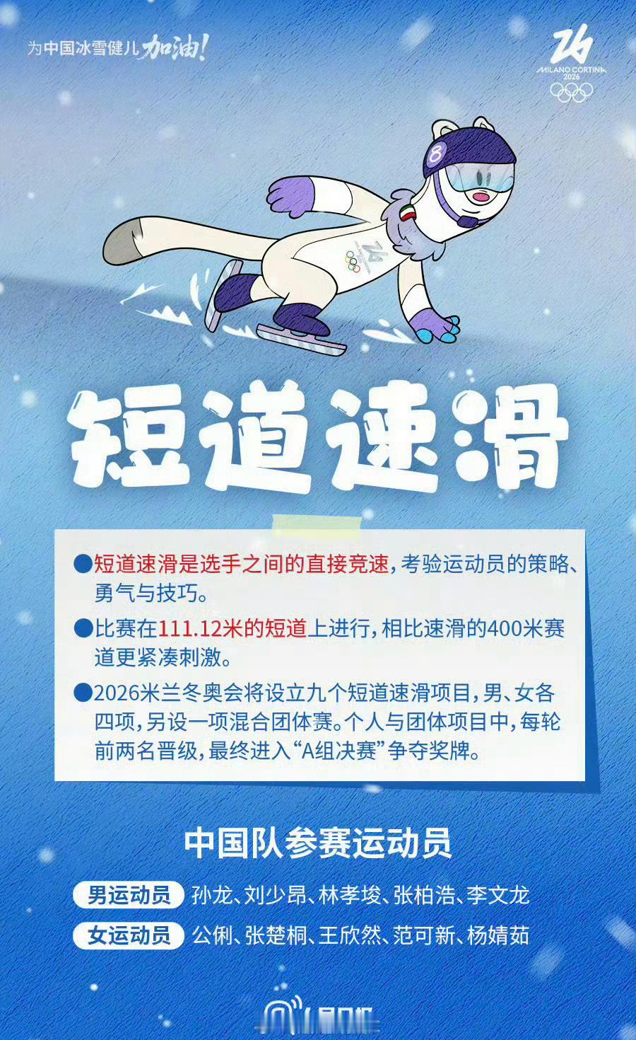 看到肖战的滑冰首秀,身姿轻盈、滑行流畅,是否唤起了你对冬奥冰上项目的好奇心?戳图带你了解短道速滑、速度滑冰、花样滑冰的专业知识,以及对应的米兰冬奥中国队参赛运动员阵容。让我们共同期待中国冰雪健儿在米兰冬奥会上,以全力以赴之姿,滑出那一道最闪耀的轨迹,加油!!
