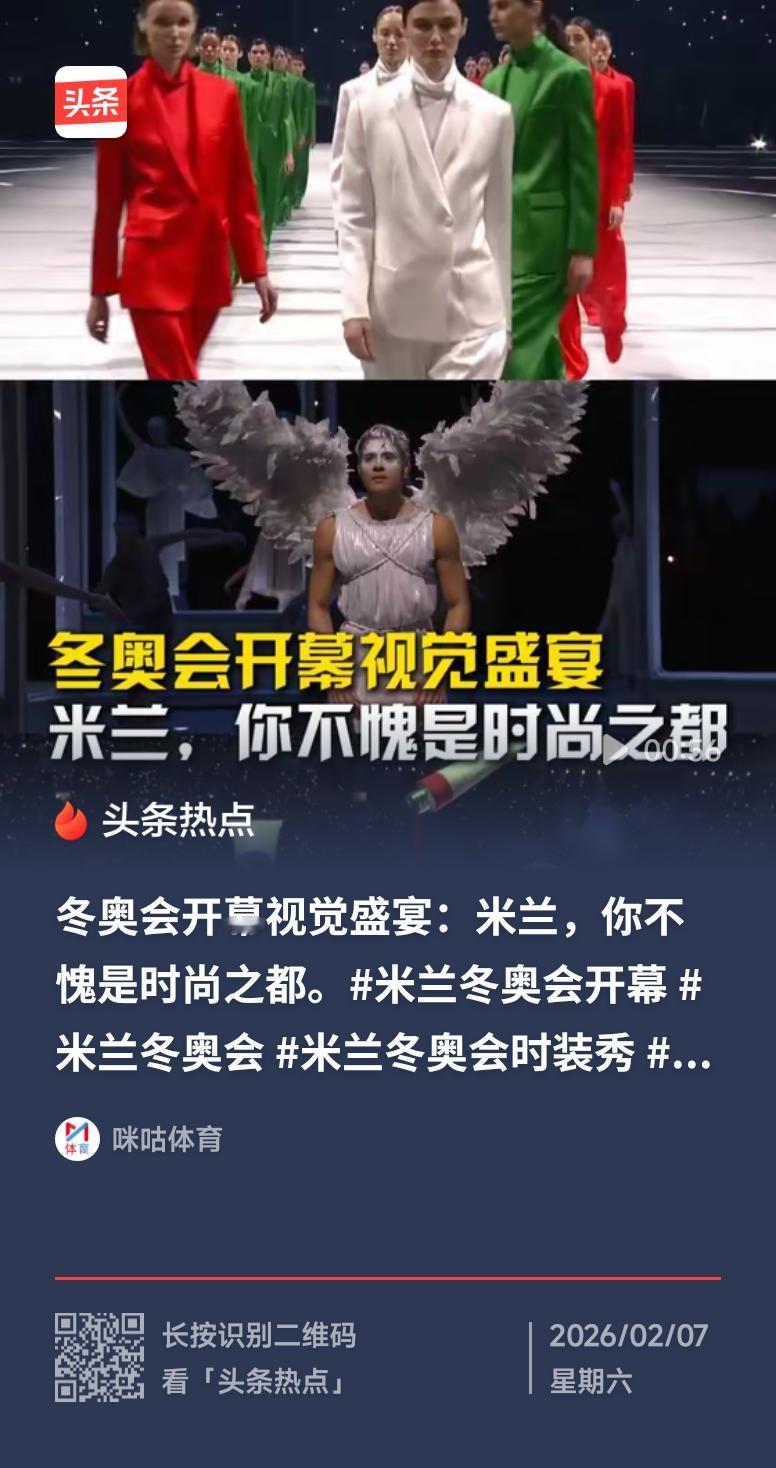 分不清是冬奥开幕式还是时装秀米兰冬奥会开幕式把时尚基因刻进了骨子里,满屏的色彩碰撞与先锋创意,让人恍惚以为闯进了时装周大秀,这场“时尚冬奥”的混搭,果然是只有米兰才玩得转的浪漫。