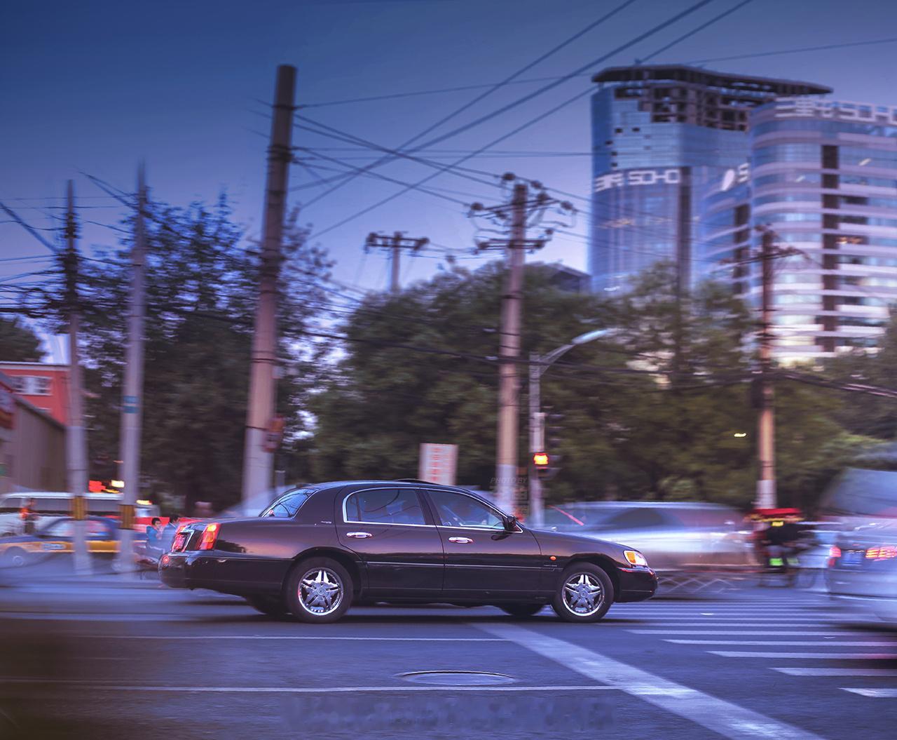 林肯Town car第三代,1998-2002的前期款式,不算很稀有,还改了个比较难评的大轮圈,一般不会太想拍。但如果是日落时分,正好停在工体东路的路口,城市的背景和天际线反光都正正好,那还是很值得一拍的。把快门速度放慢留下周围的拖影,调个老式的色调,Town car这车的意境是不是就比较到位了。