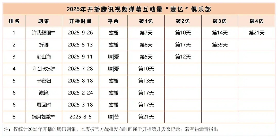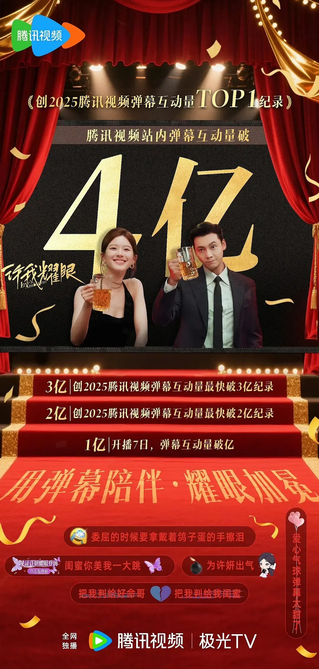 许我耀眼134天弹幕破5亿!荣登腾讯站内史上最快破5亿弹幕剧集!