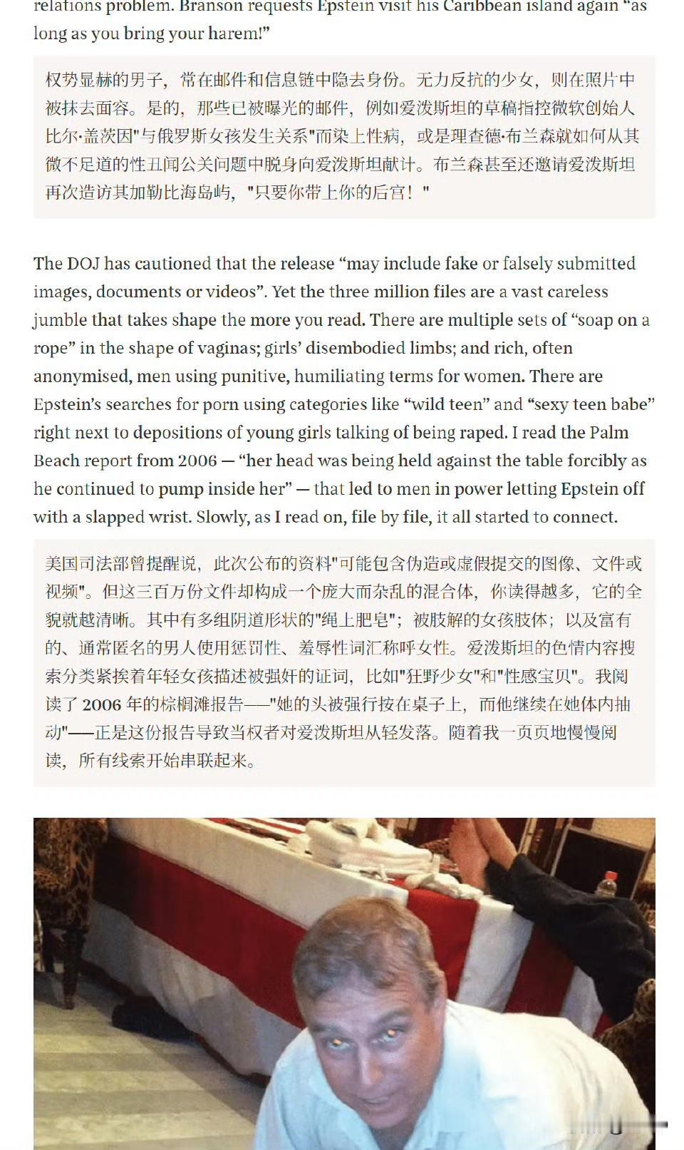 泰晤士报倒是煞有介事的以一篇文章讨论过爱泼斯坦的这些邮件,包括长寿大师、爱泼斯坦