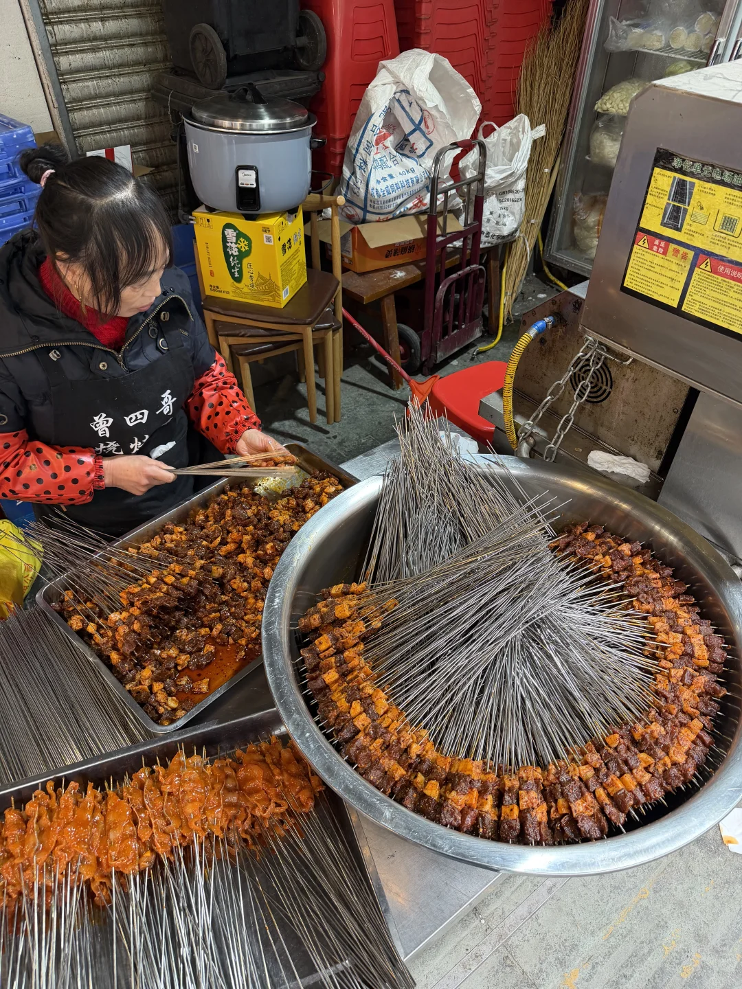 就在张公桥背后的居民楼下的烟火气小店,很多本地人来吃!以前叫曾记烧烤,后来才改名为曾四哥! 比较推荐香猪蹄、耙鸡爪、糯肥肠、鲜牛腩!这几样都是先卤后烤的,很香很入味!!!还有烤鱼片也是他家特色!人多的话一定要点一份油呛临江鳝丝面,乐山的特色菜,比外面很多店的都好吃!很适合跟朋友家人一起去的!!!