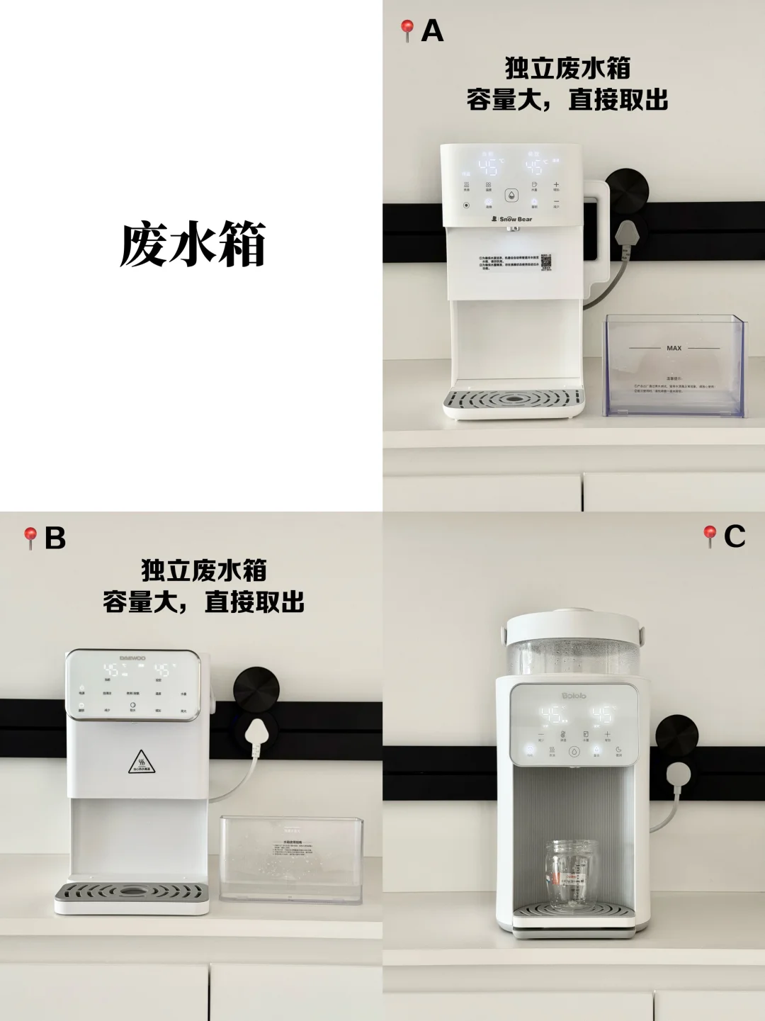 还有一点让我惊喜的是它的便捷度!加水清洗都特别方便,分体式的设计不用搬整机,侧边提手也比较顺手