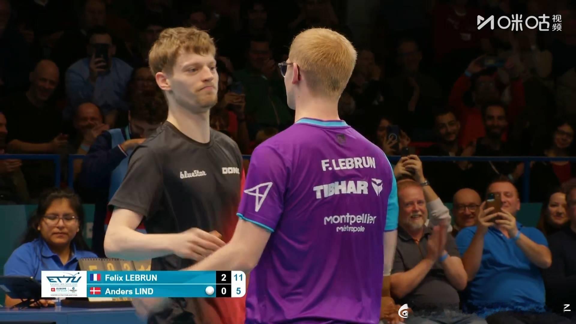 菲利克斯勒布伦3比0林德(8,7,5)晋级2026年国际乒联欧洲16强杯男单半决