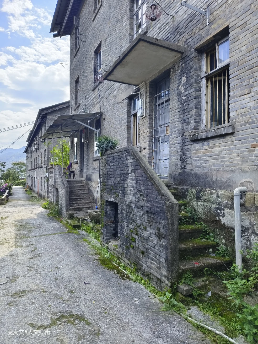 一百多栋青砖老家属楼依山叠建,石阶被岁月磨得光滑,青苔悄悄爬满台阶缝隙。墙面上“保卫祖国”的红字标语虽已褪色,却仍透着当年的热血;铁艺栏杆锈迹斑斑,晾衣绳上的衣物、盆罐里的葱蒜花草,又让冰冷的建筑裹上了浓浓的烟火气。