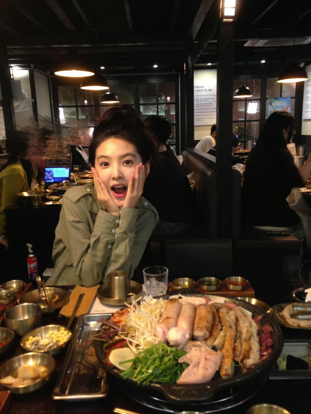 张天爱跟素人合影,胯真的好宽,大宅院似的