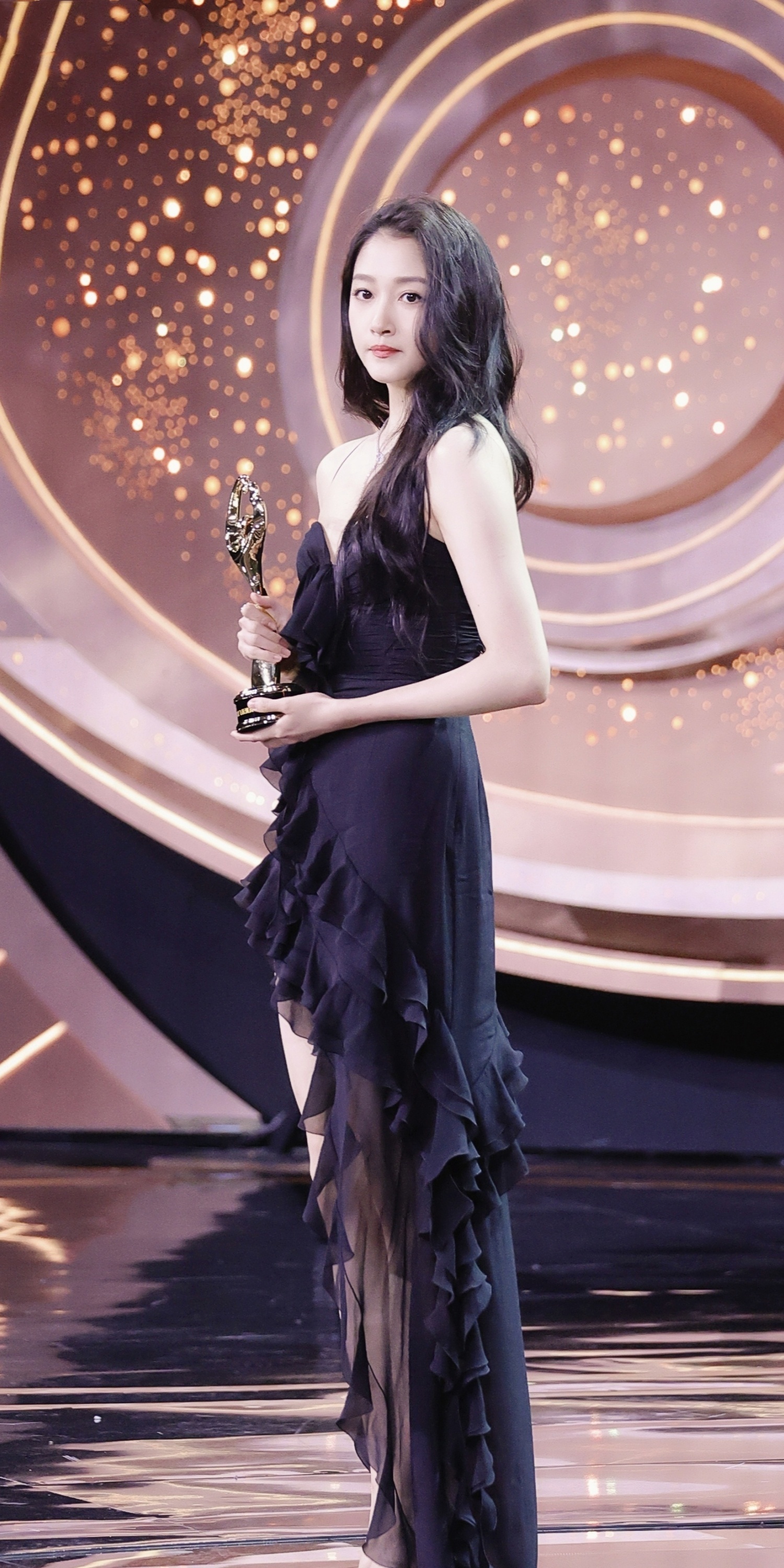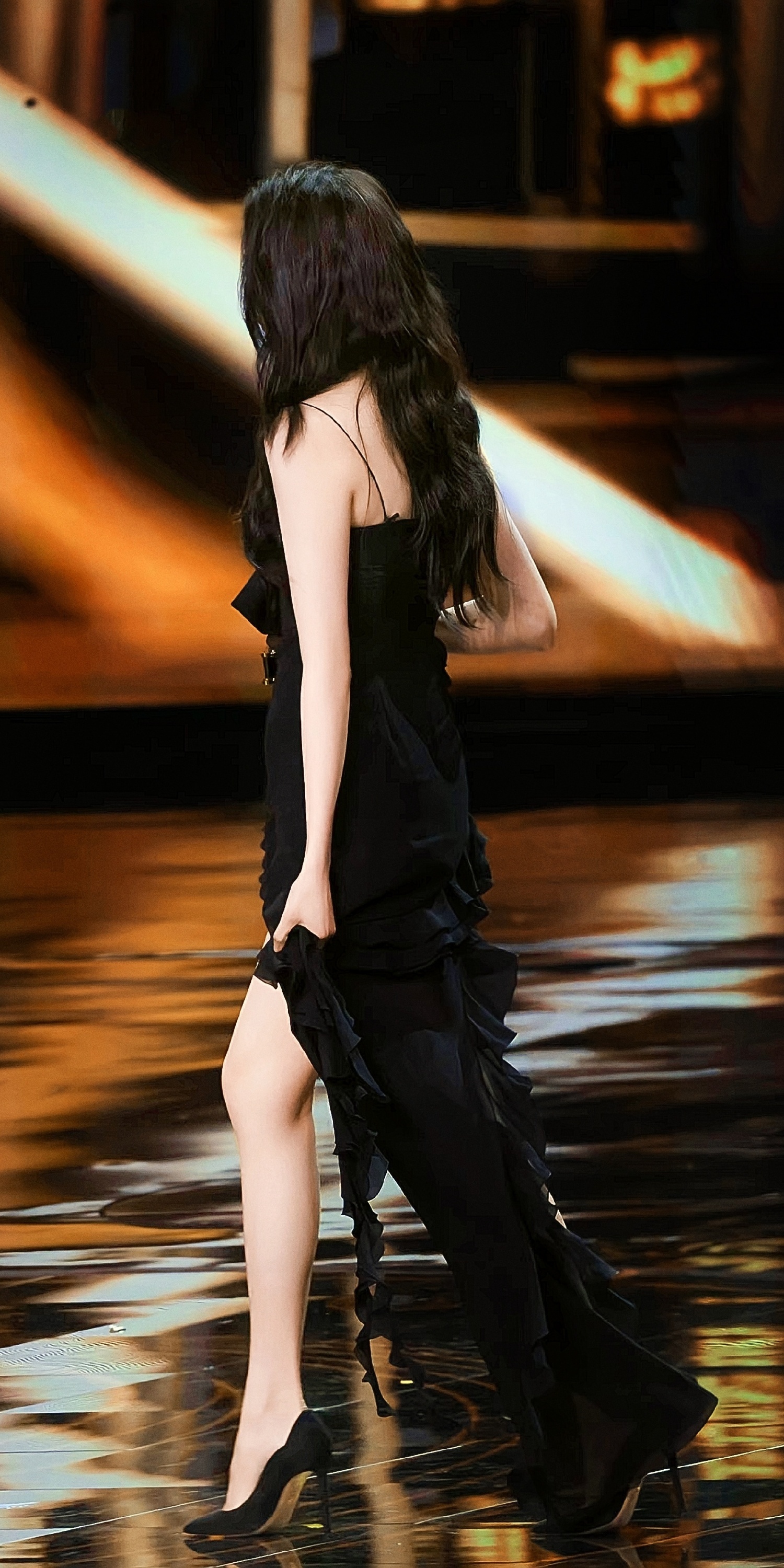 关晓彤经典红毯妆造型:红唇黑裙大长腿,简约大气。关晓彤