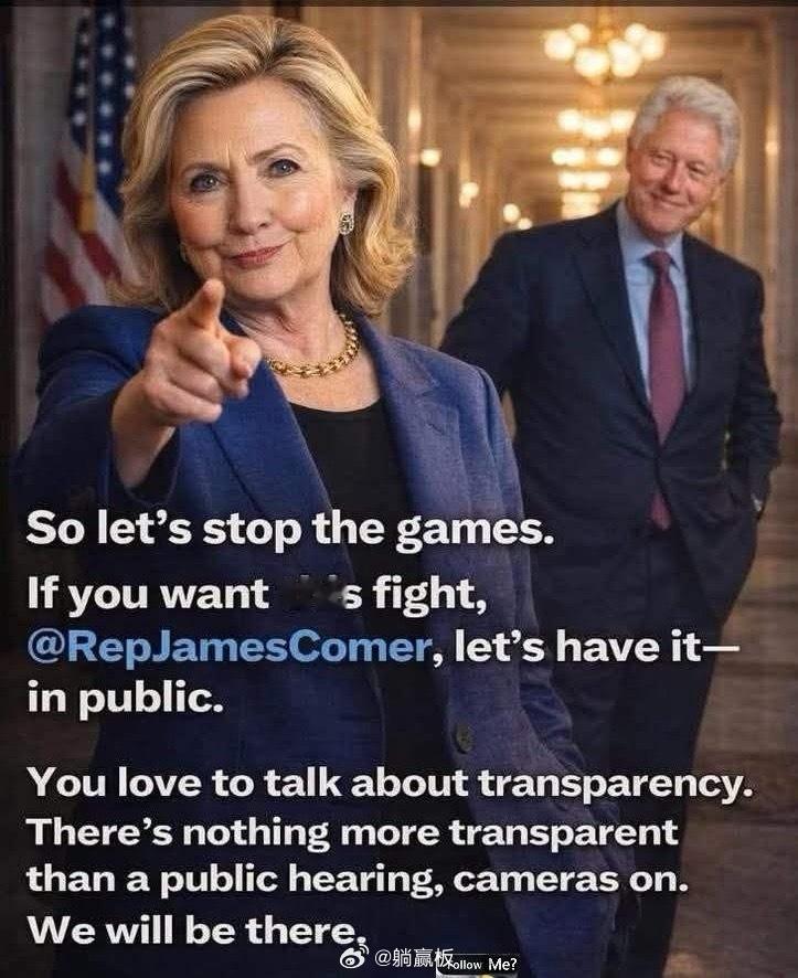 希拉里·克林顿要求即将到来的爱泼斯坦案国会听证向全美直播而不是闭门听证,这一宣布让国会共和党议员措手不及,他们拒绝了克林顿夫妇要求公开听证的请求,因为担心泄露不必要的个人隐私。