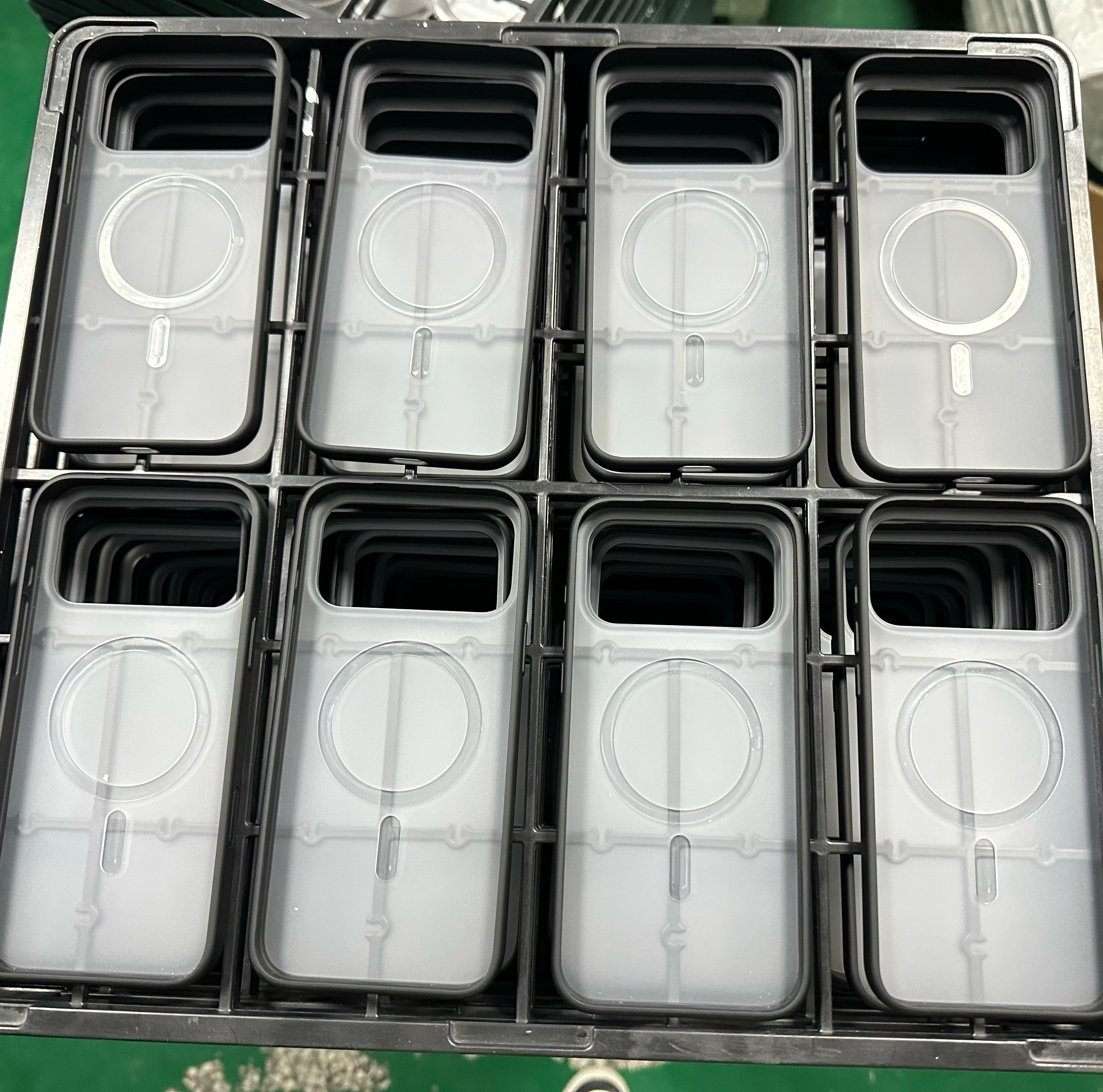 iPhone17ProMax 013 磁吸槽位已锣了一部分了。先锣摄像头大孔,然后锣磁吸凹槽,擦干净后放盘子里,然后上滴油台,开始点磁圈漆。点漆后一般需要一天时间才能干,干了后才能贴磁铁进凹槽里面。