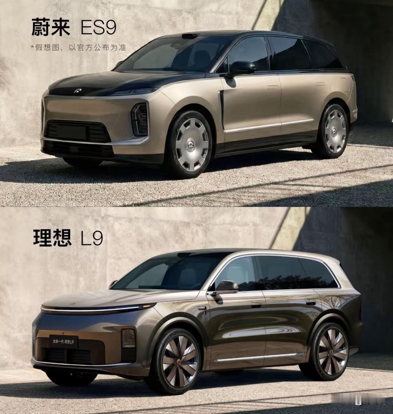理想对蔚来,王牌对王牌。 增程vs纯电:换电肯定更加快捷,纯电也更加代表新能源,但是续航能力会差很多;增程式续航能力很强,技术就稍显落后了。 5.36vs5.25:大小没有可比性,蔚来ES9会是绝对的王者,理想L9 Livis与大多数大型旗舰SUV在同尺寸范围内。 老钱风vs时尚尊者:理想L9 Livis有一种流行时尚成熟了的感觉,而蔚来ES9像是一个庞然巨物的有气场的时尚产品又显得尊贵。 卖座vs展示:理想L9保有量非常大,终于升级了气场和可以与M9多扛的层次,预计销量会短暂成为50万级别车销冠。而ES9的定位大致会参照ET9,树立品牌形象的作用大于实际销量表现。
