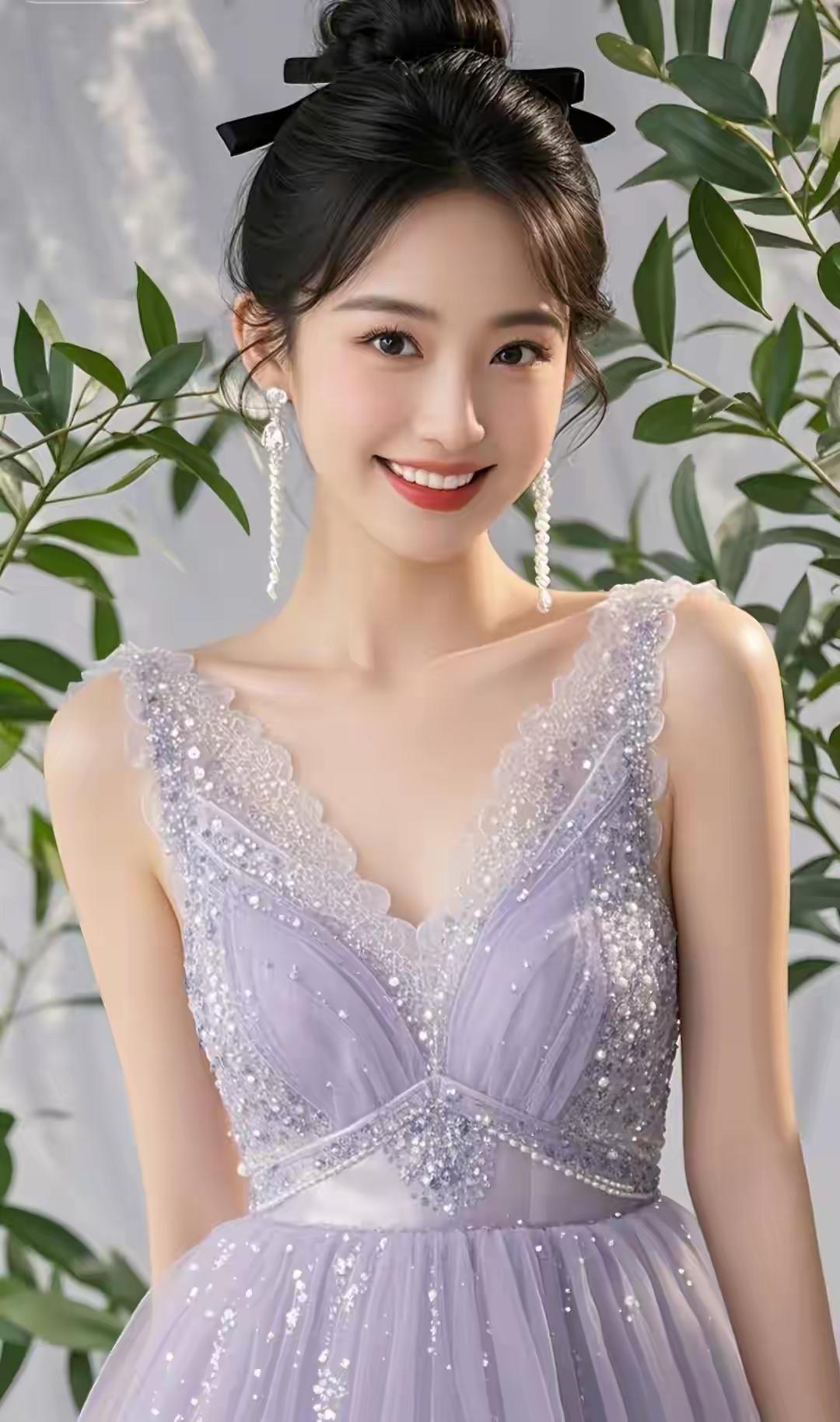 穿着的这条裙子,裙摆如梦幻云霞,走动时轻轻摆动。亮片像夜空中闪烁繁星,勾勒出凹凸有致的身材,让这条紫色仙女裙更具吸引力。