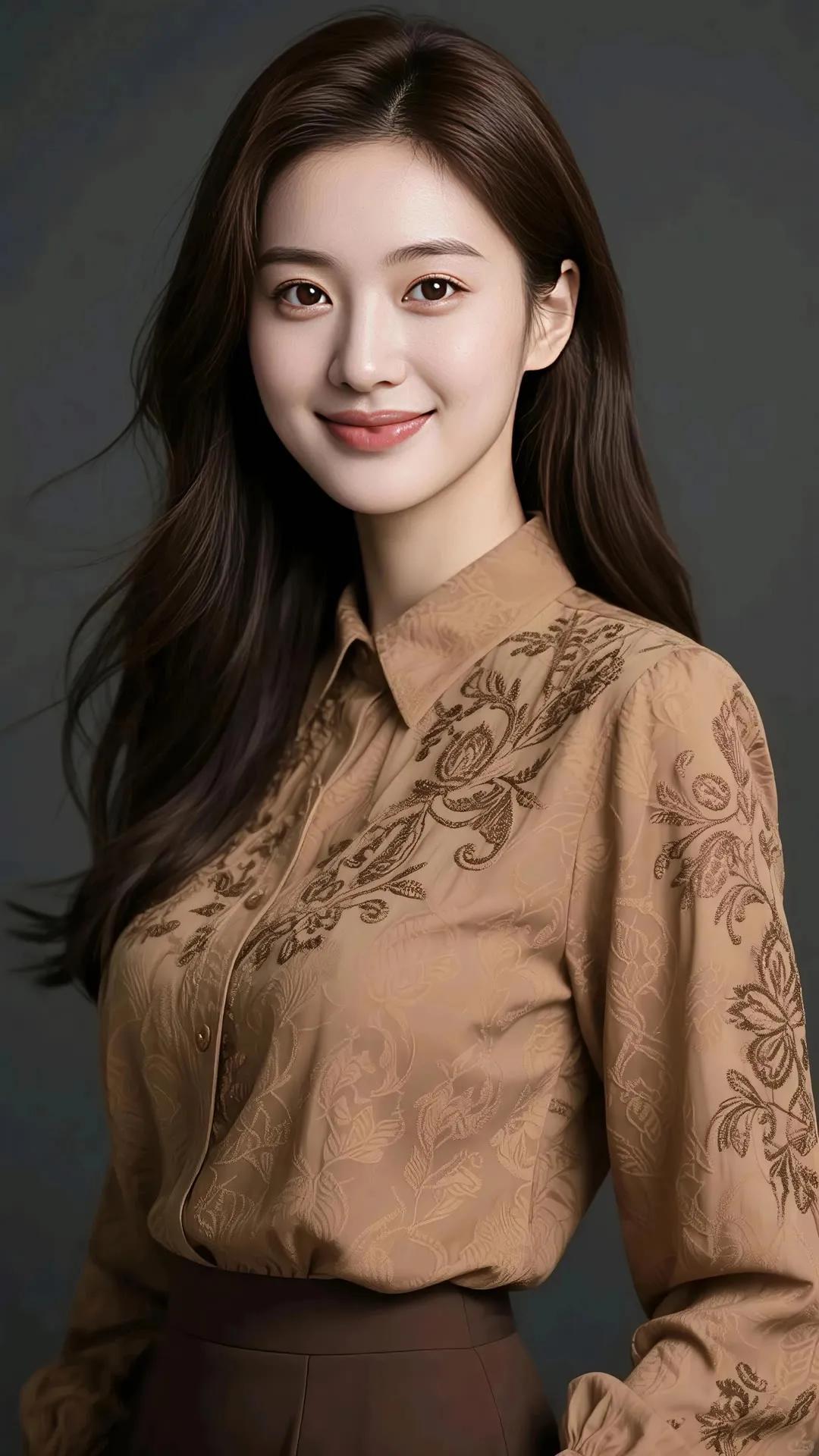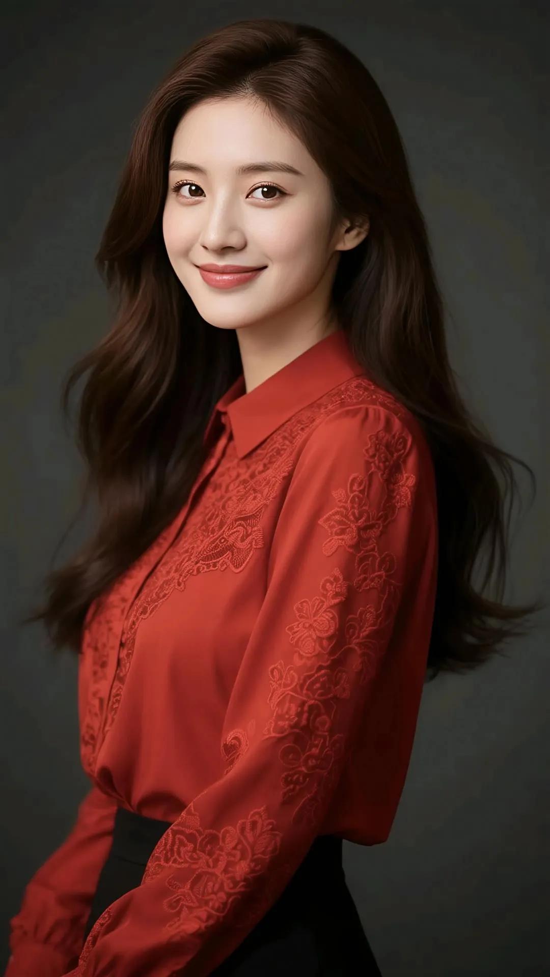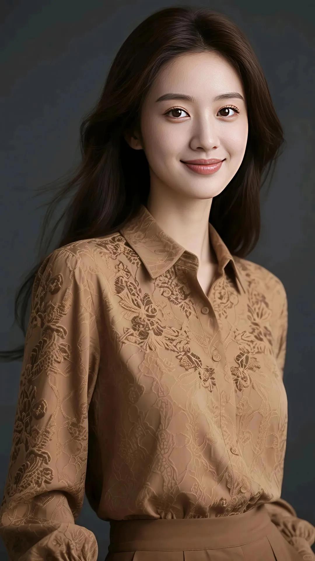 优雅气质,复古风穿搭,精致妆容,微笑动人。