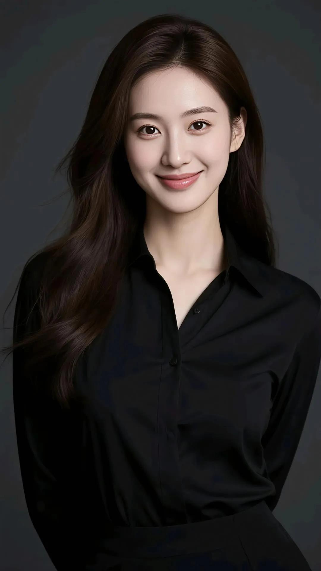 优雅黑衣女郎,自信微笑,职场女性魅力