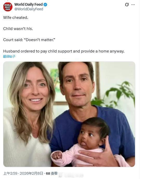 加拿大,一名妻子出轨后生下他人孩子,丈夫知晓后与妻子她分居,此事最终闹上了法庭申请离婚法院裁定,如果子女在合法婚姻关系存续期间出生,则根据法律,丈夫被视为子女的父亲。因此,法院责令丈夫支付子女抚养费,并为子女提供住所。