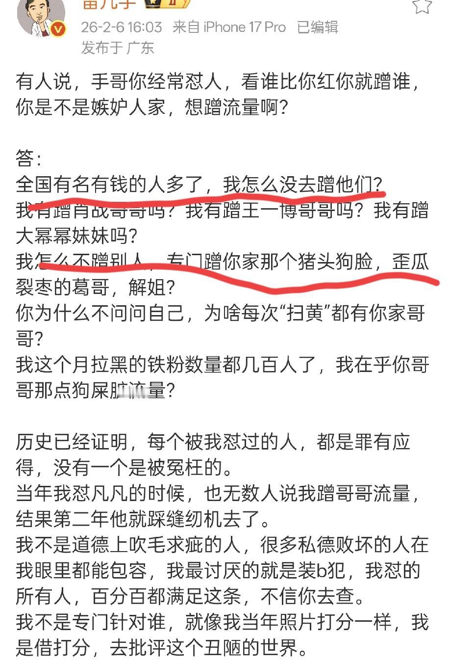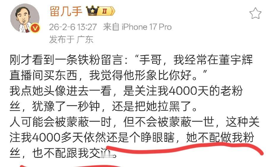 不愧是我关注了好多年的网红,在面对丈母娘的攻击时,丝毫不怯,战斗力爆表! 董宇辉也是个欺软怕硬的主! 我等小博主发一点他的不好,过几天就给你投诉掉了。 面对手哥这种体量的网红,他却连回应都不敢。 再次选择了让丈母娘 们冲锋陷阵,替他卖力。 但是,手哥可不是俞敏洪,他也是初代大网红,怼人的功力一流,还不会喷脏骂 娘。 丈母娘遇到他,讨不到一点好处。 [笑哭]