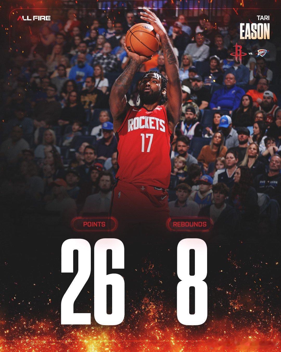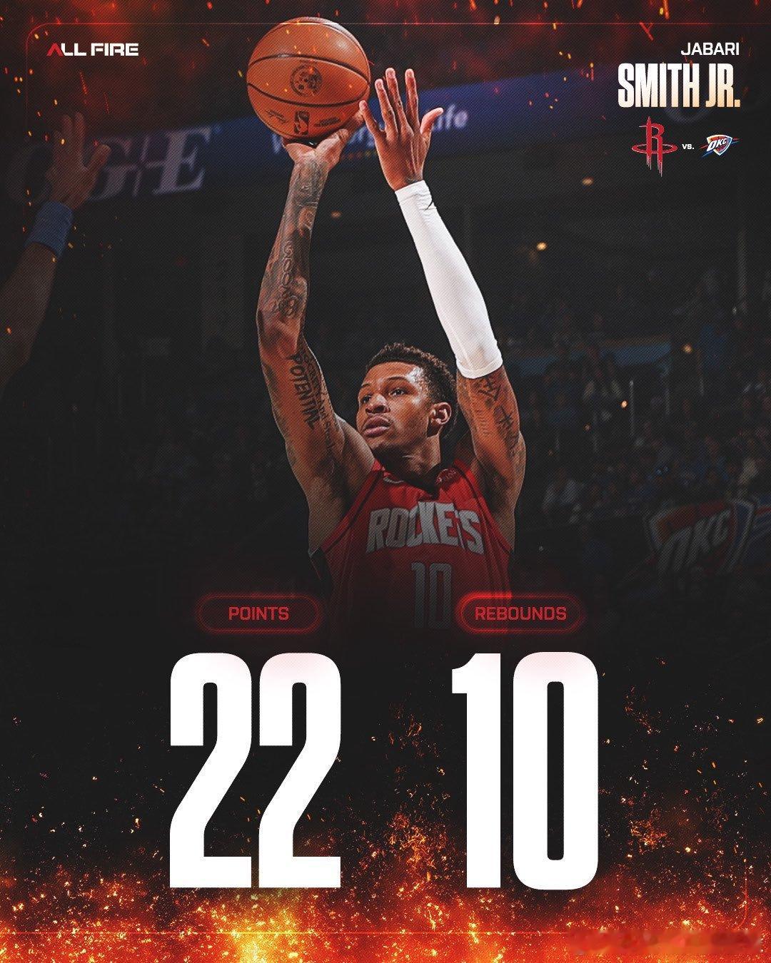 火箭官方晒出伊森、贾巴里、申京今日的数据海报📸火箭赛季首胜雷霆火箭vs雷霆休斯