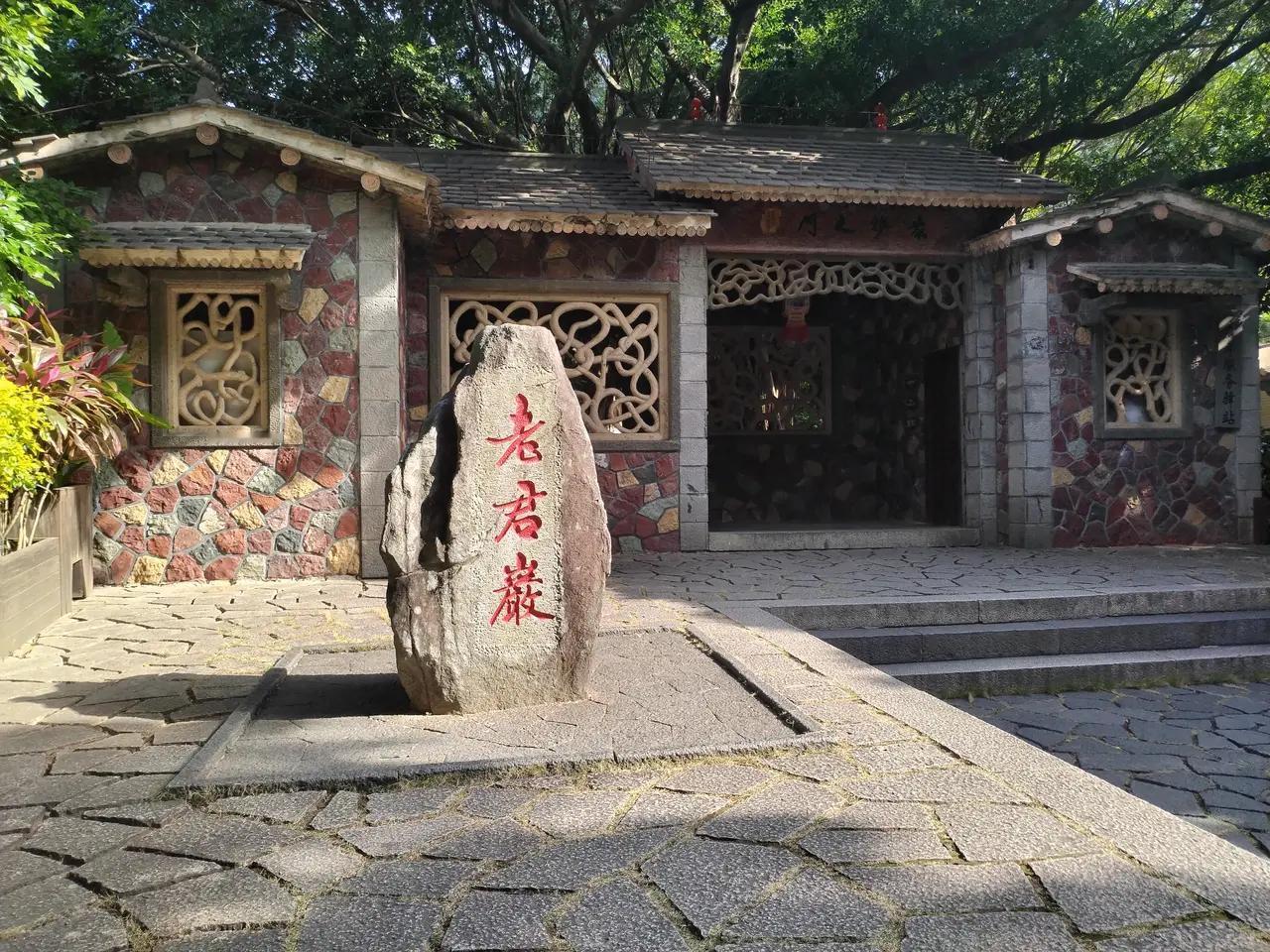 真不愧为"老子天下第一“ 来到泉州清源山风景区,进入老君岩。这里古榕树参天蔽日,千姿百态。周围环境,无不给人一种神秘又庄重感。 走上无障碍长廊后,首先进入眼帘的是,一座高大厚重的老人雕像,神情自若的坐在那里,目视着这个世界。 这就是泉州非常伟大的遗产道家学说创始人一一老子石刻造像。 老子造像高5,63米,宽8,01米,厚6,85米。雕像是由一整块花冈岩,由古艺人经过斧雕而成。 只见老君席地而坐,额纹清晰如岁月刻痕收容眼平视前方,慈眉善目间带有从容平淡自然。双耳垂肩,长髯捶胸,左手轻佛膝盖,右手悠然凭几,自带仙风道骨。 老君神态自若,凝视当今与未来,真不愧为”老子天下第一”。