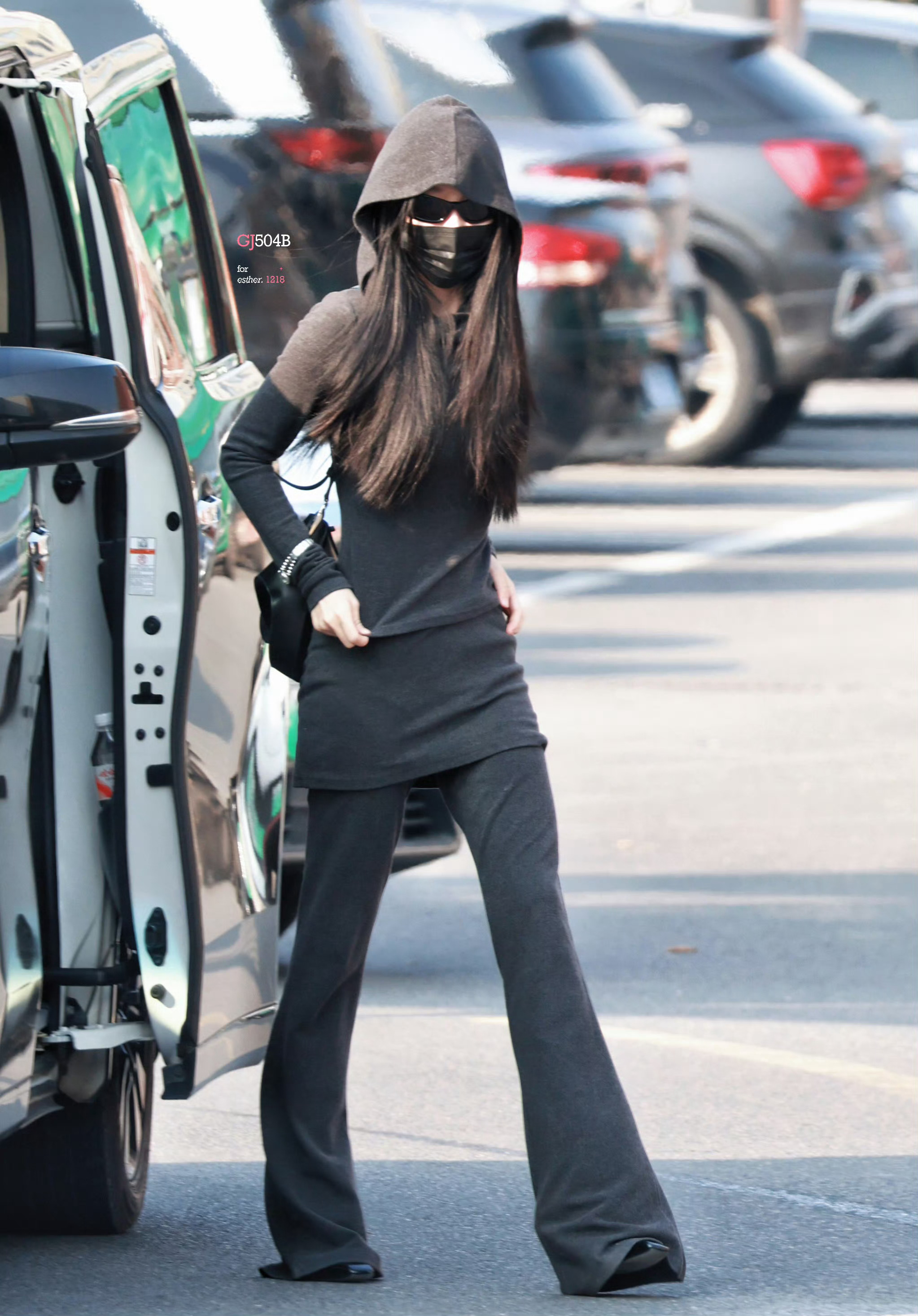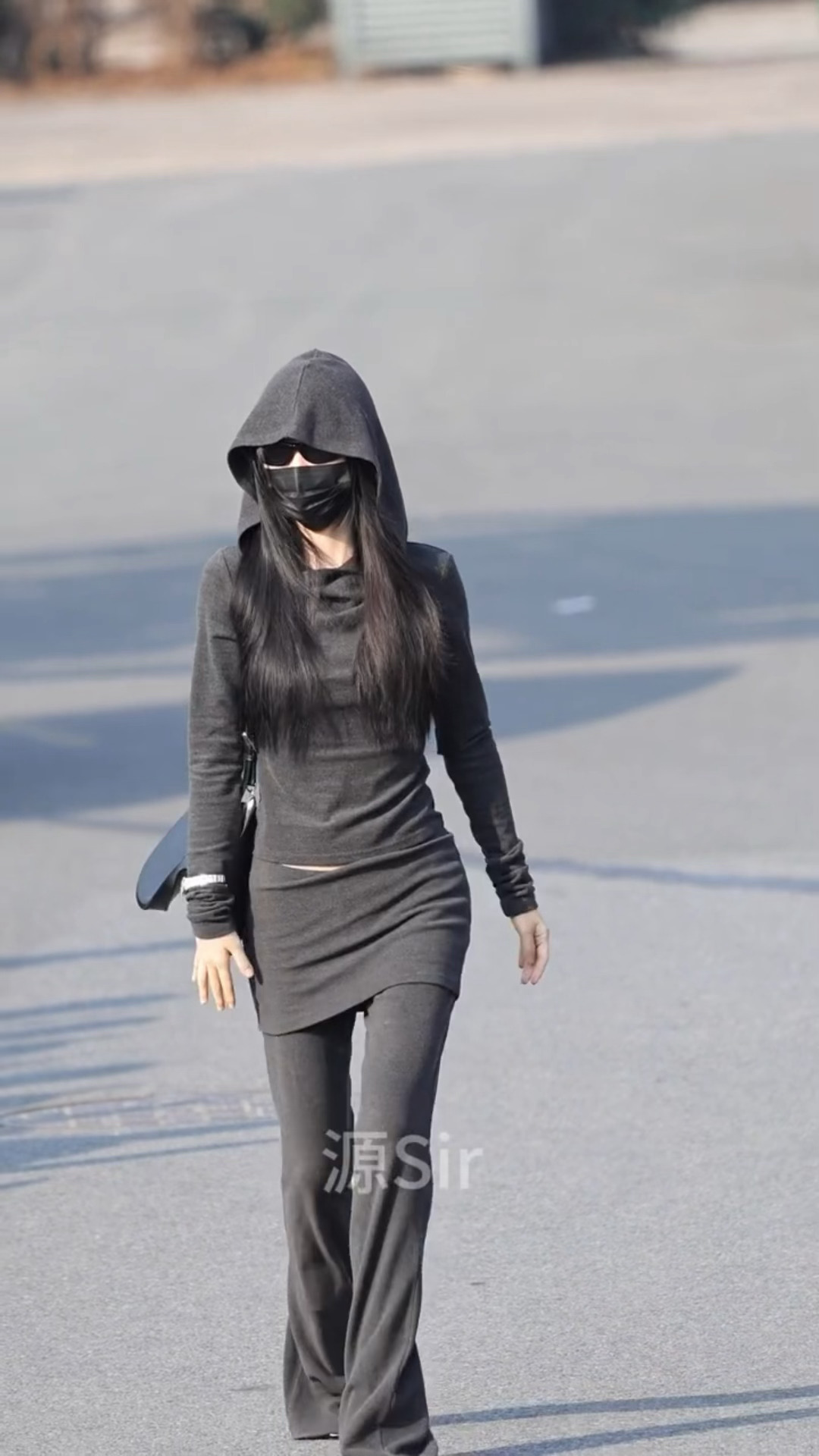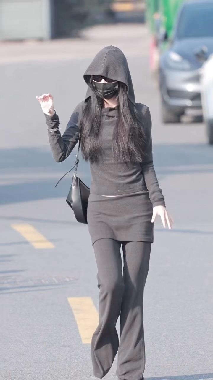 虞书欣格温限时返场虞书欣灰色连帽裙裤套装